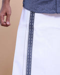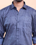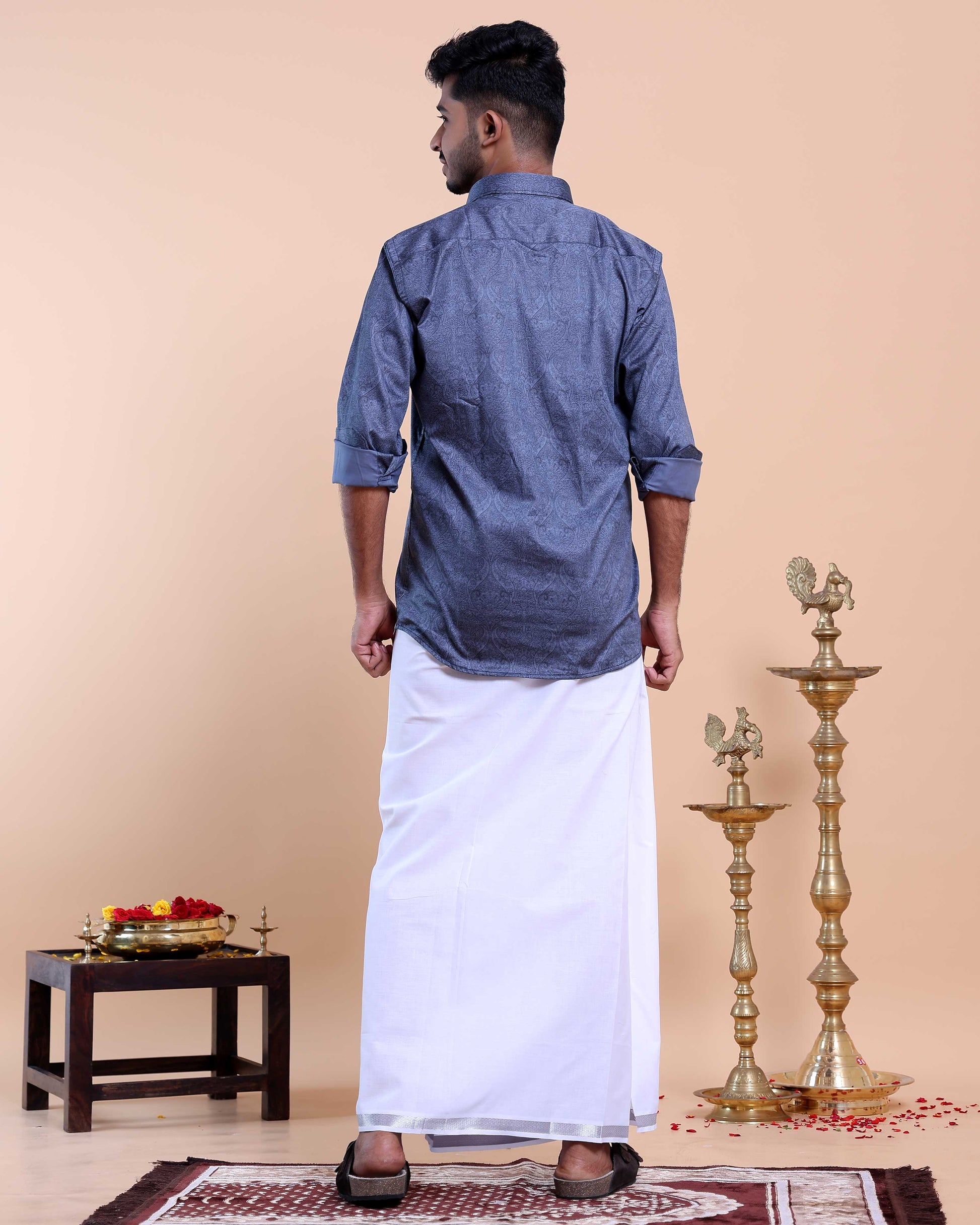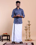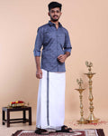 Elevate your traditional style with this men's Blue Color shirt and White Color dhoti set, crafted from comfortable cotton