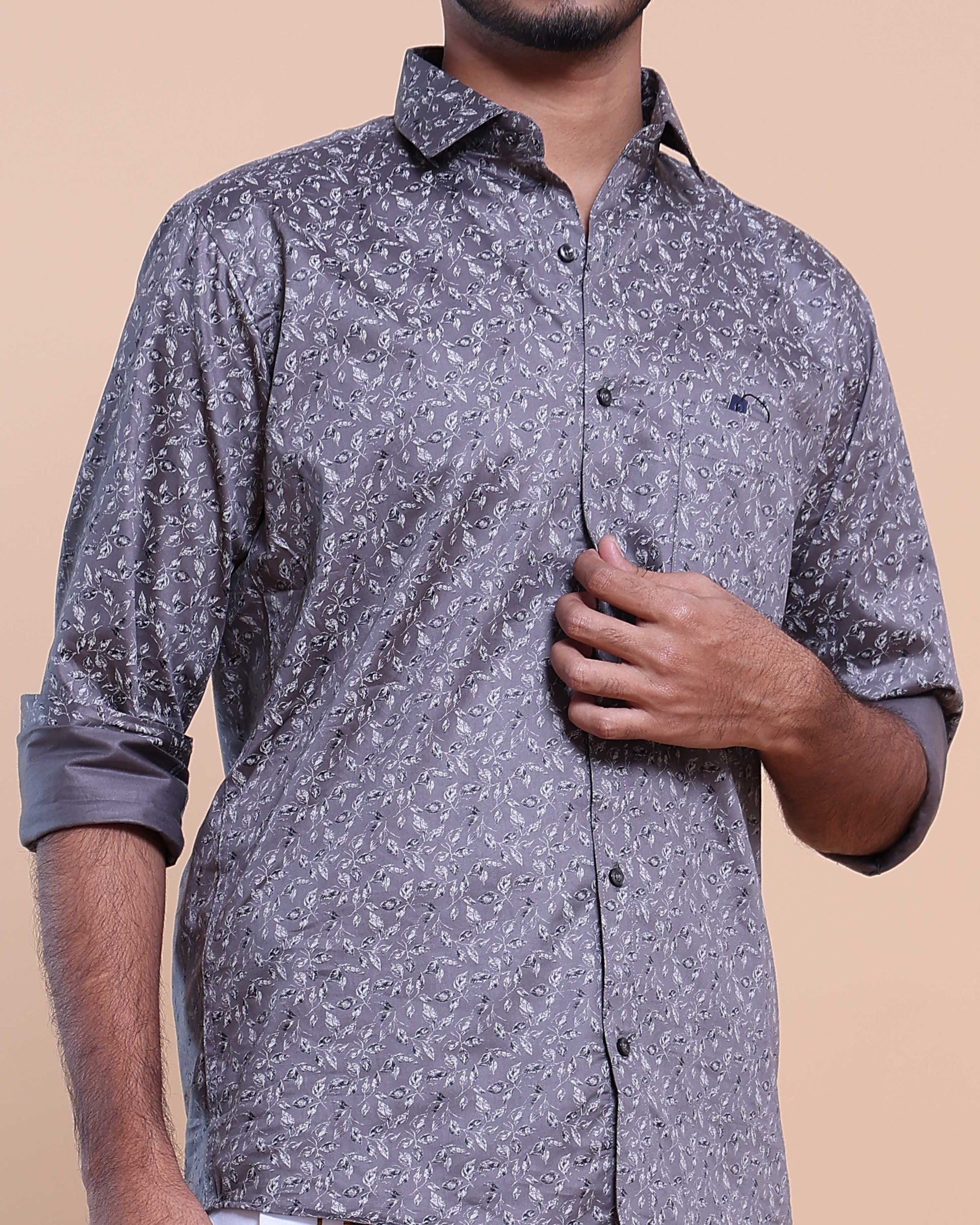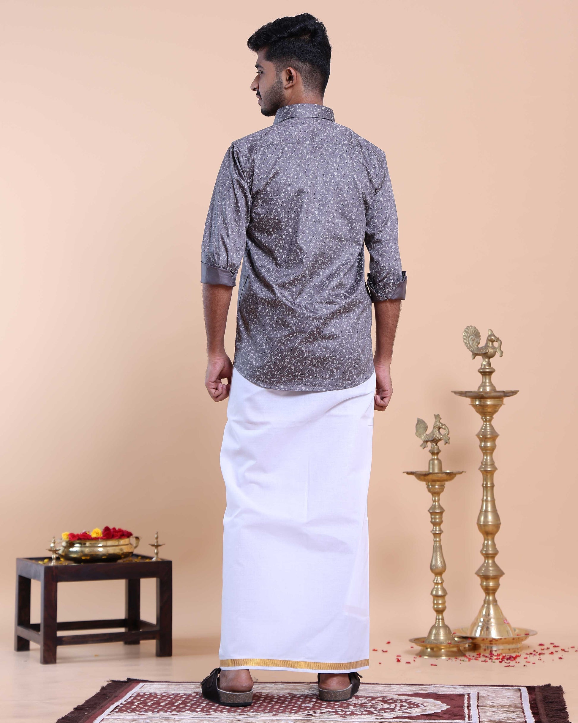 Elevate your traditional style with this men's Grey Color shirt and White Color dhoti set, crafted from comfortable cotton
