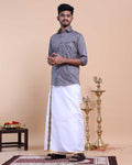 Elegant Men's Ethnic Full Sleeve Shirt & Dhoti Set with Zari Border - Grey