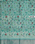 - This Green Paithani saree is a traditional masterpiece, a rich pallu with intricate peacock and floral weaving