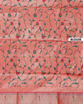 The saree is complemented by a traditional border and small butties woven throughout the body