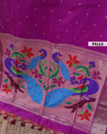 - This Purple Paithani saree is a traditional masterpiece, a rich pallu with intricate peacock and floral weaving