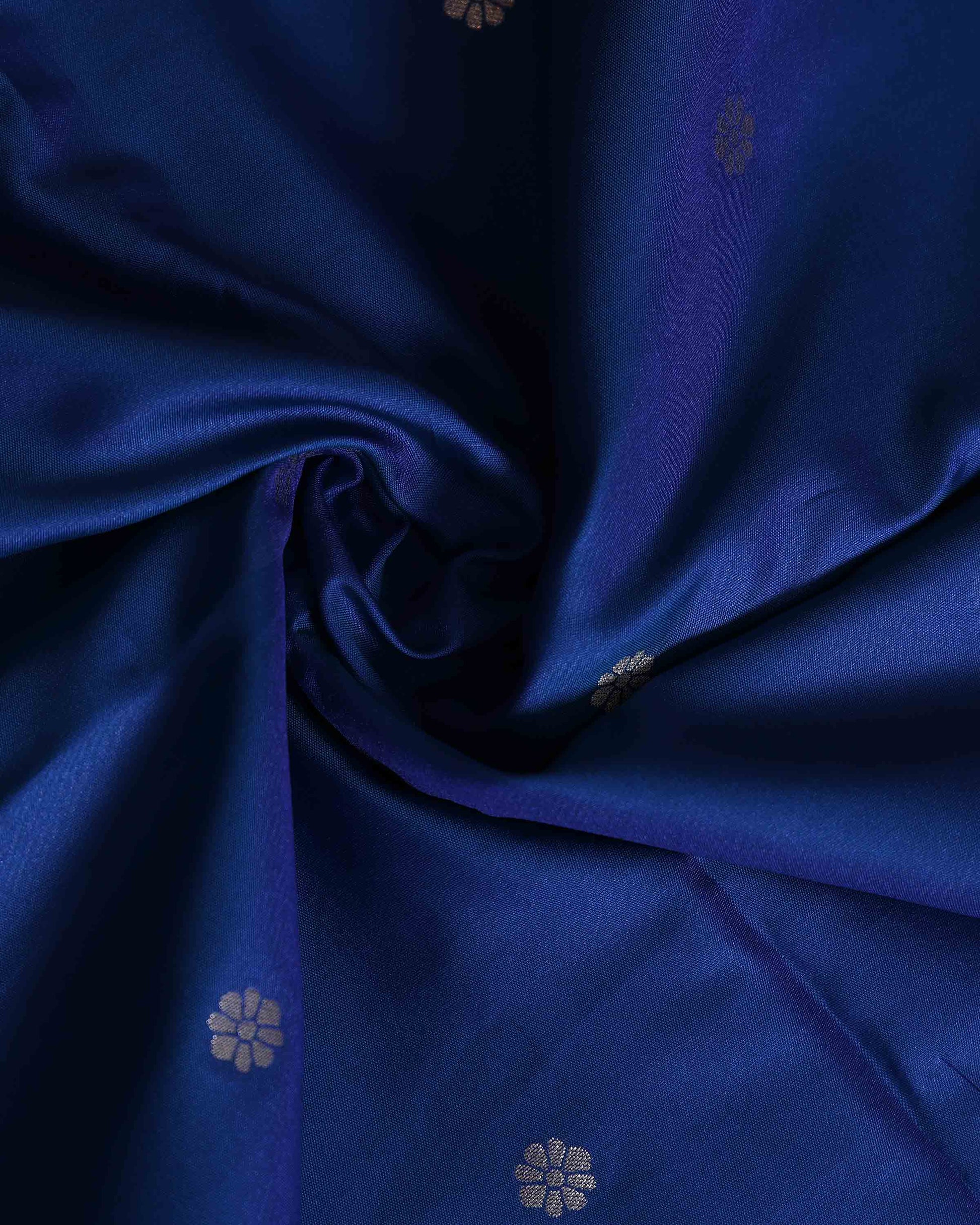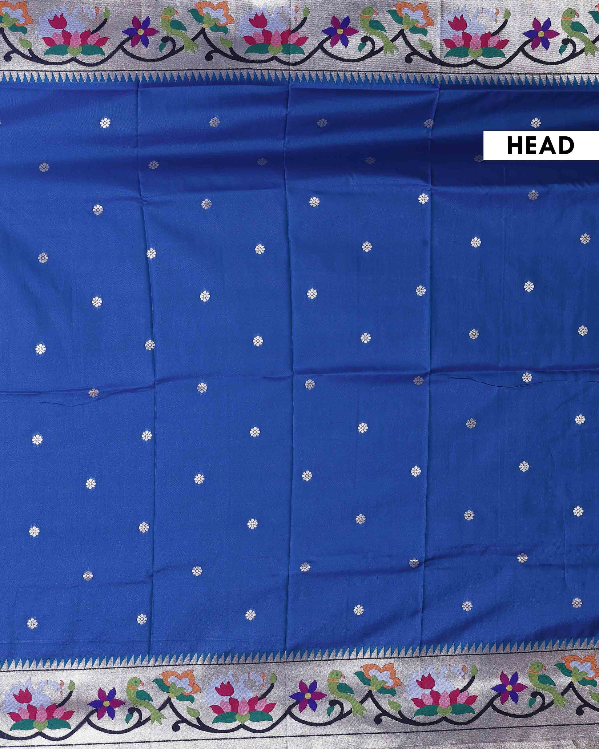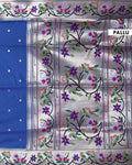 Elegant Paithani Silk Saree with Intricate Floral Motif Border and Delicate Butti Weave - Blue