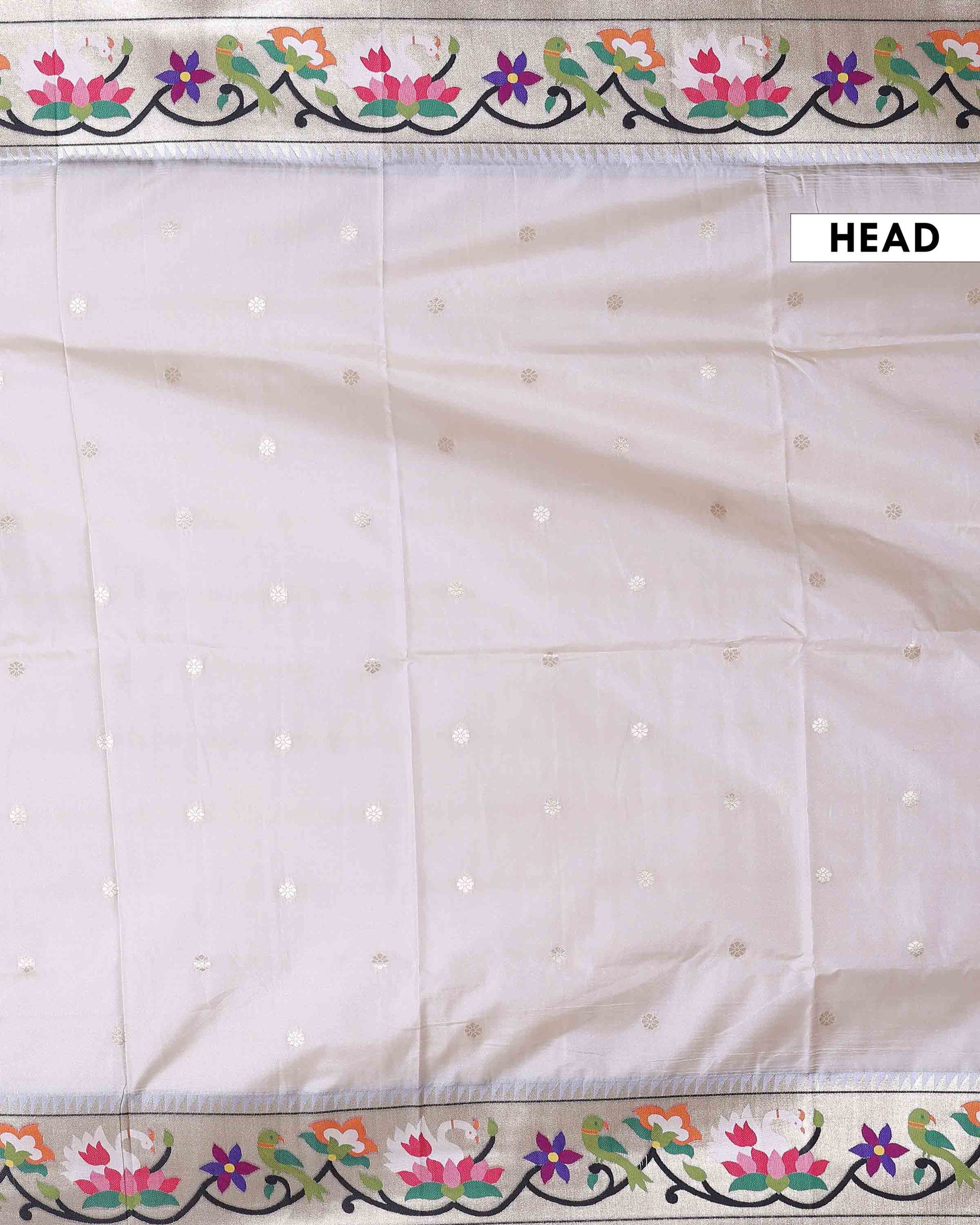 Elegant Paithani Silk Saree with Intricate Floral Motif Border and Delicate Butti Weave - Off White