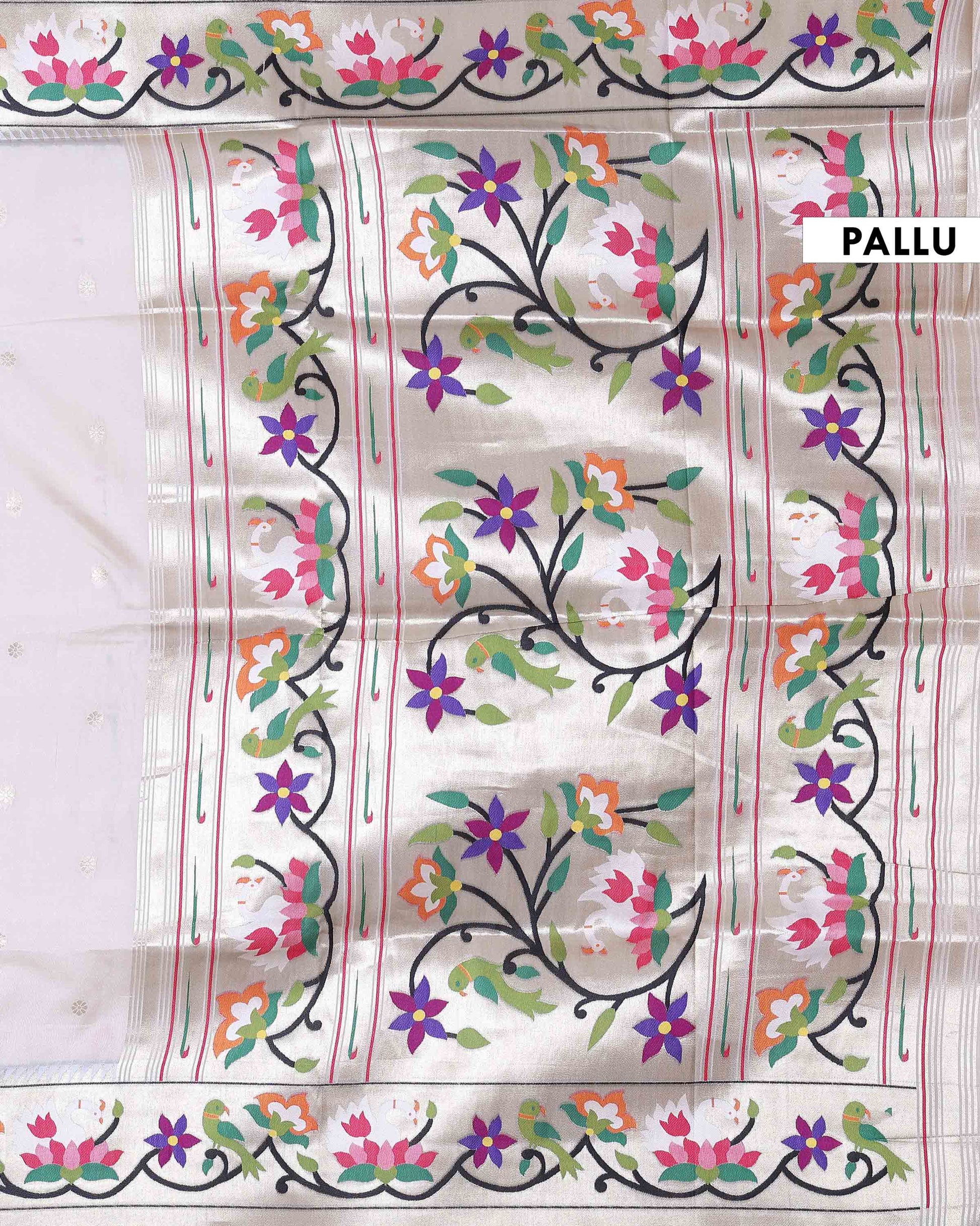 - This Off White Paithani saree is a traditional masterpiece inspired from the traditional paithani art.