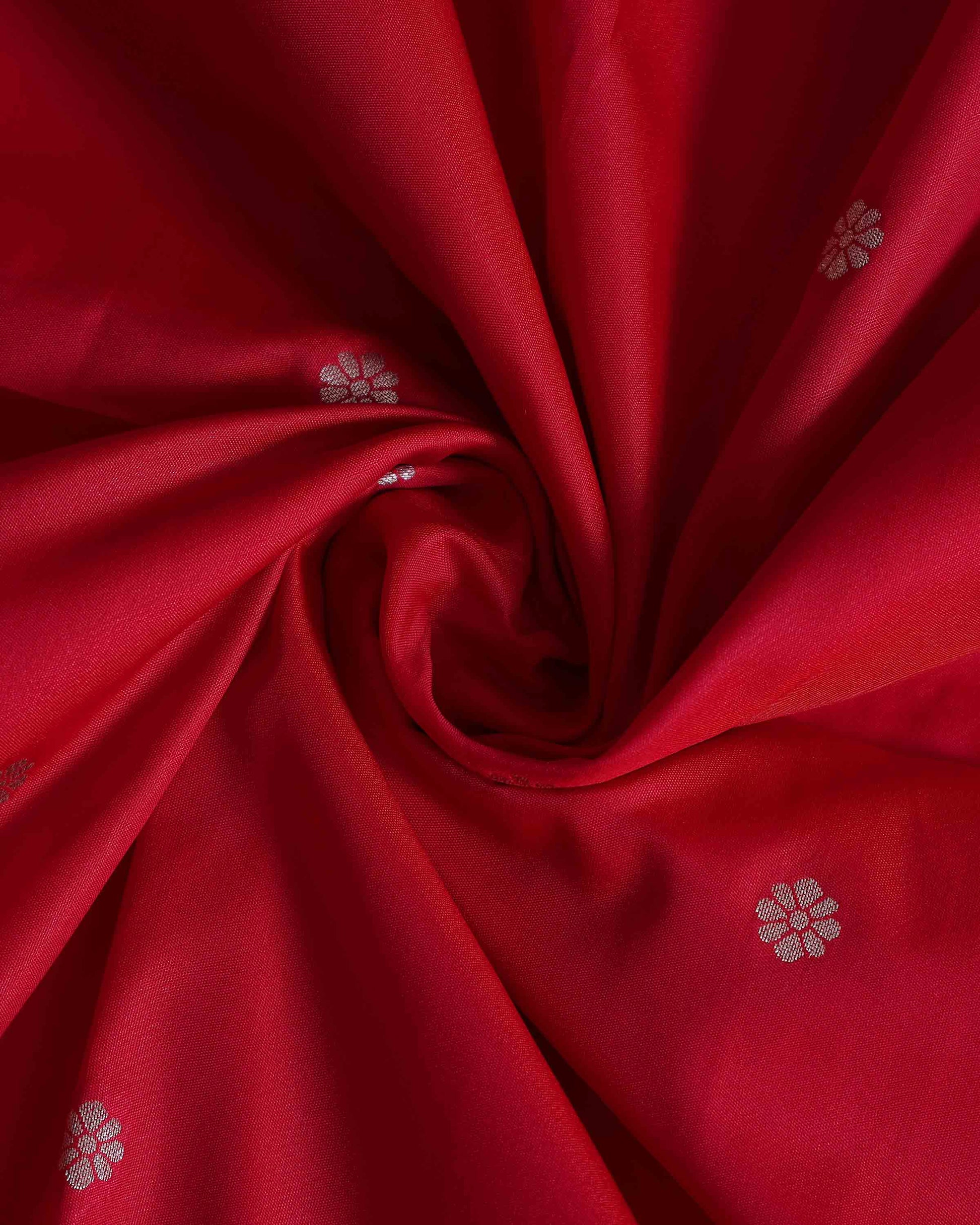 The saree is complemented by a traditional border and small butties woven throughout the body