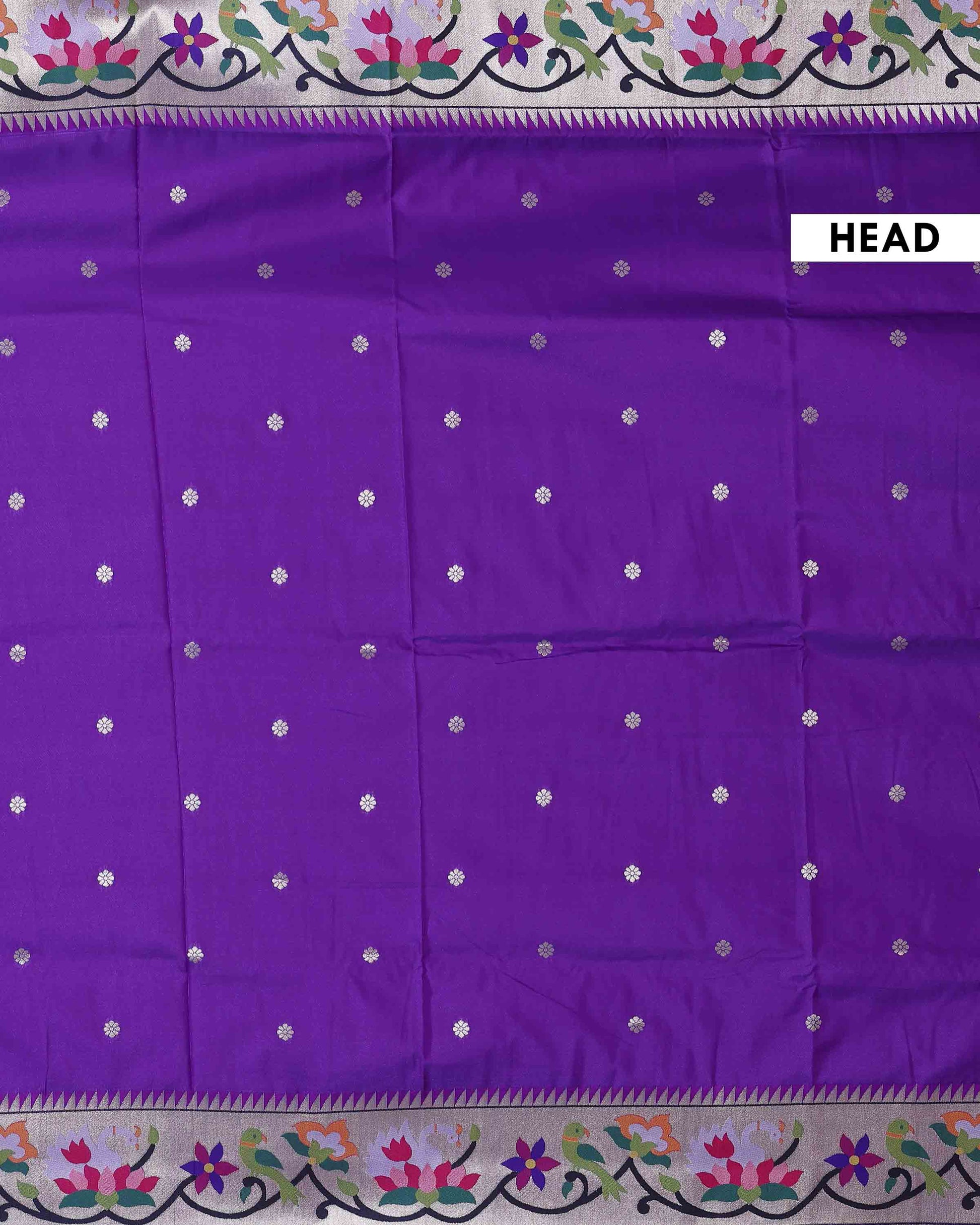 Elegant Paithani Silk Saree with Intricate Floral Motif Border and Delicate Butti Weave - Purple