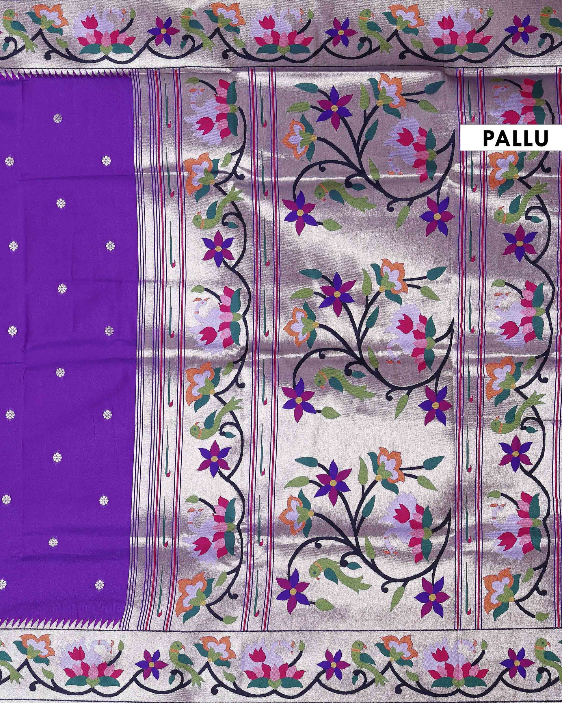 - This Purple Paithani saree is a traditional masterpiece inspired from the traditional paithani art.