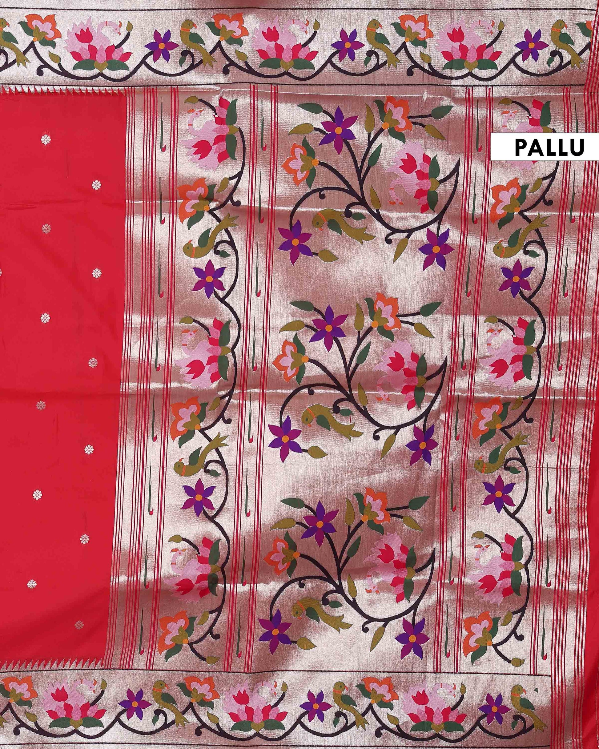 - This Red Paithani saree is a traditional masterpiece inspired from the traditional paithani art.