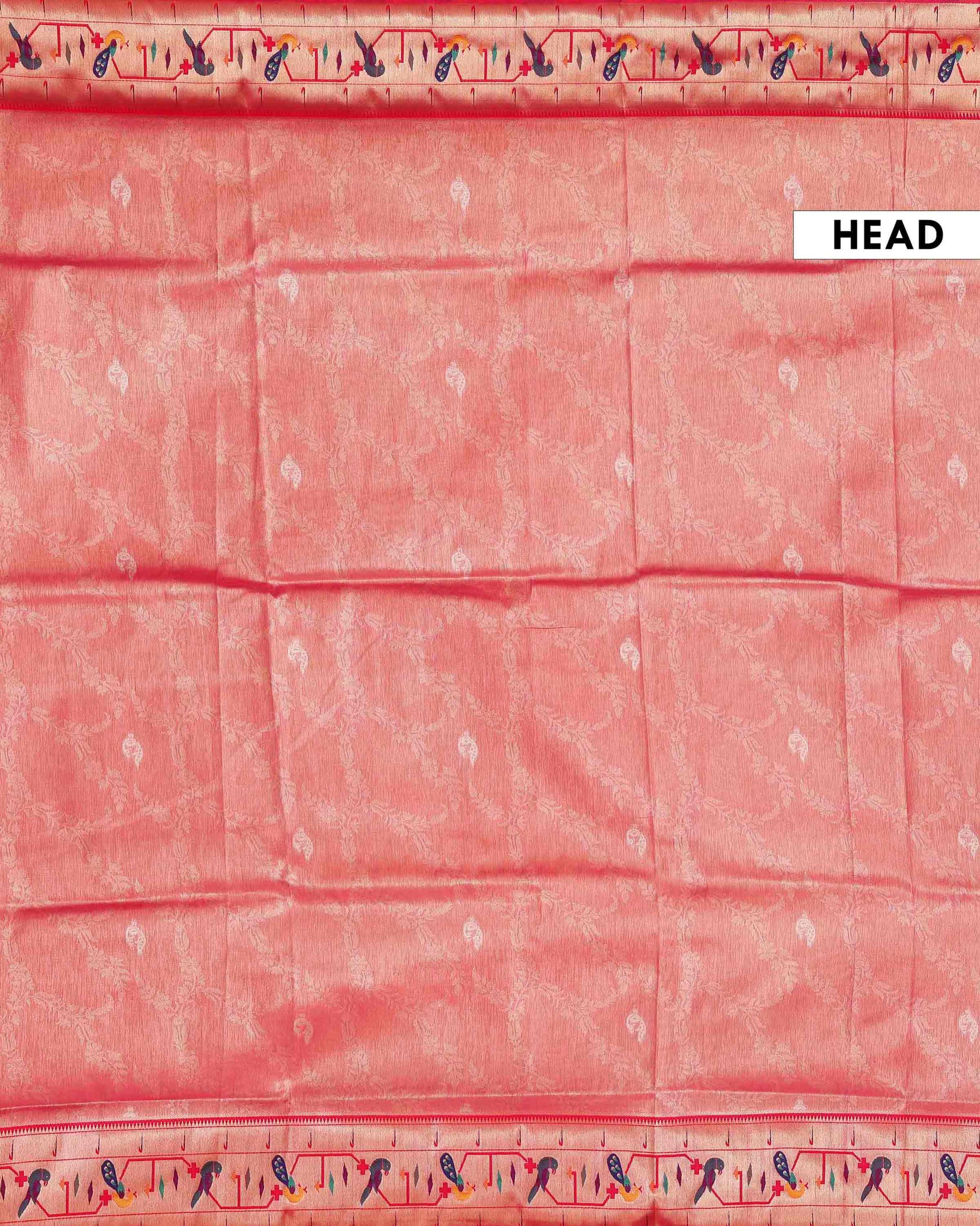 Elegant Paithani Tissue Saree with Traditional Peacock Motif Border and Rich Zari Weave - Pink