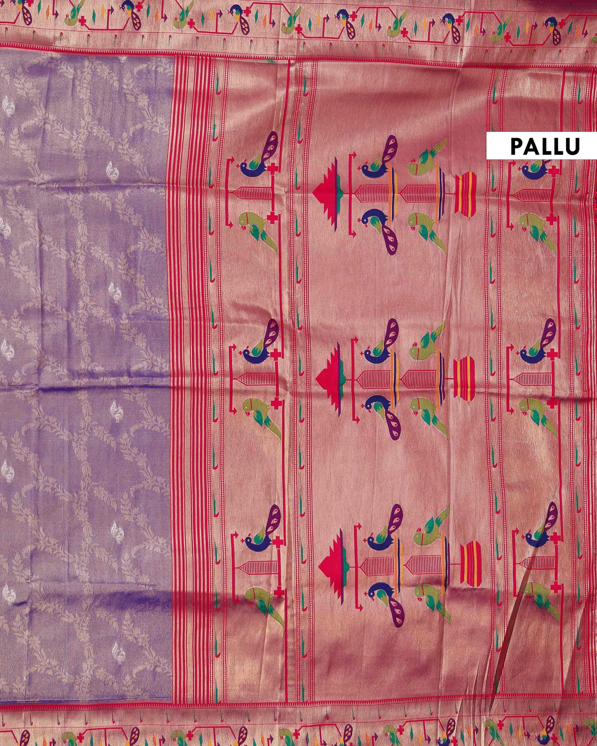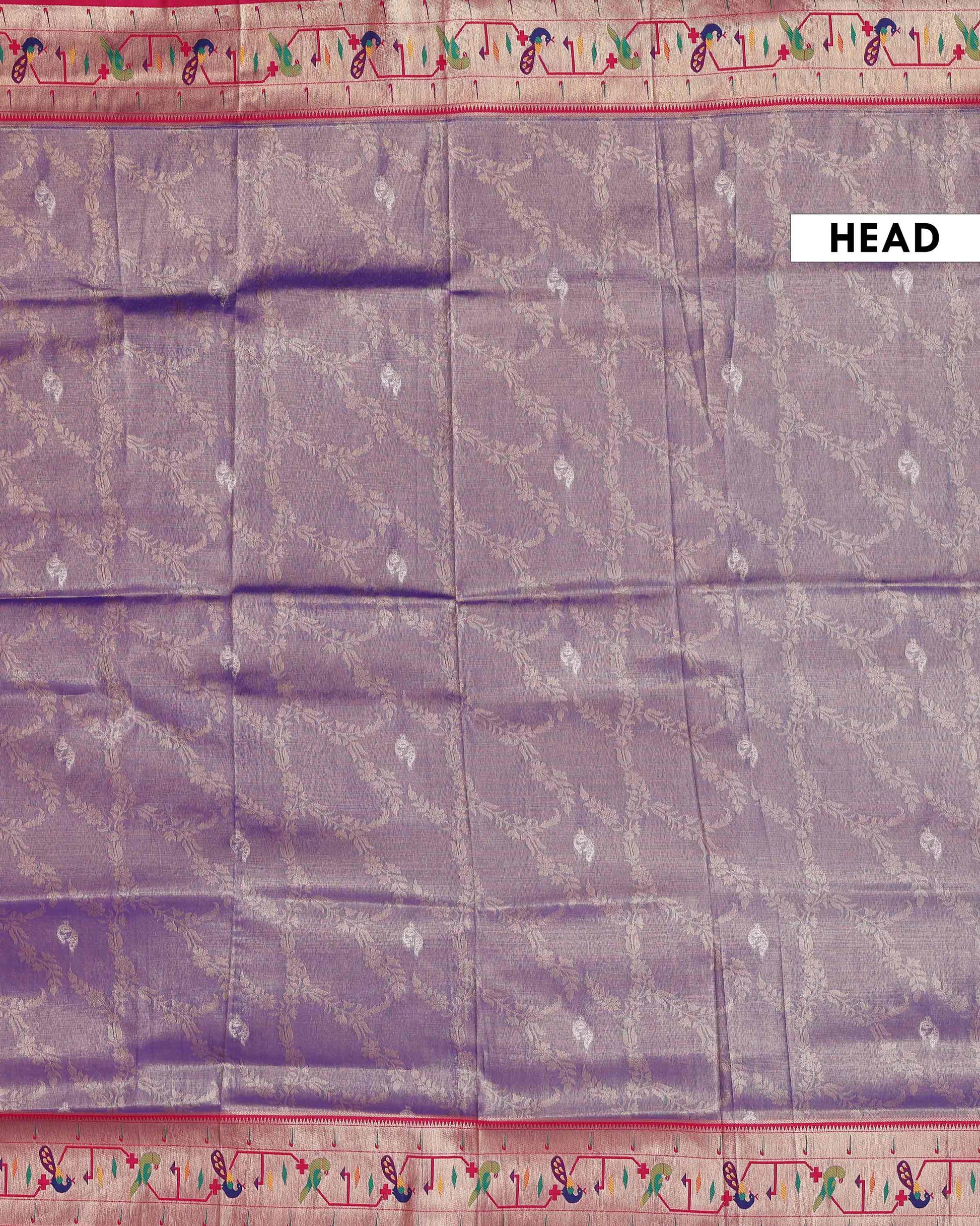 Elegant Paithani Tissue Saree with Traditional Peacock Motif Border and Rich Zari Weave - Purple