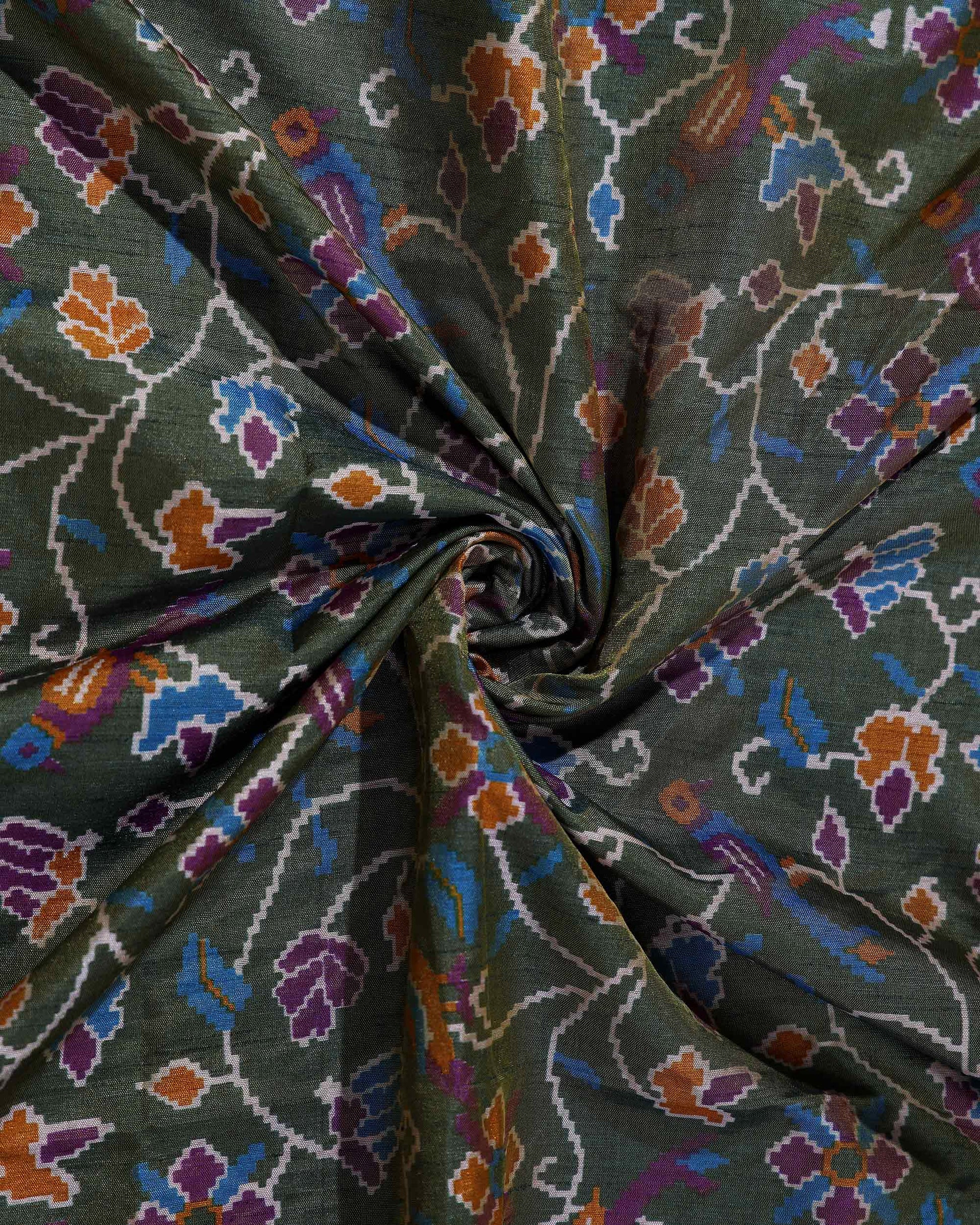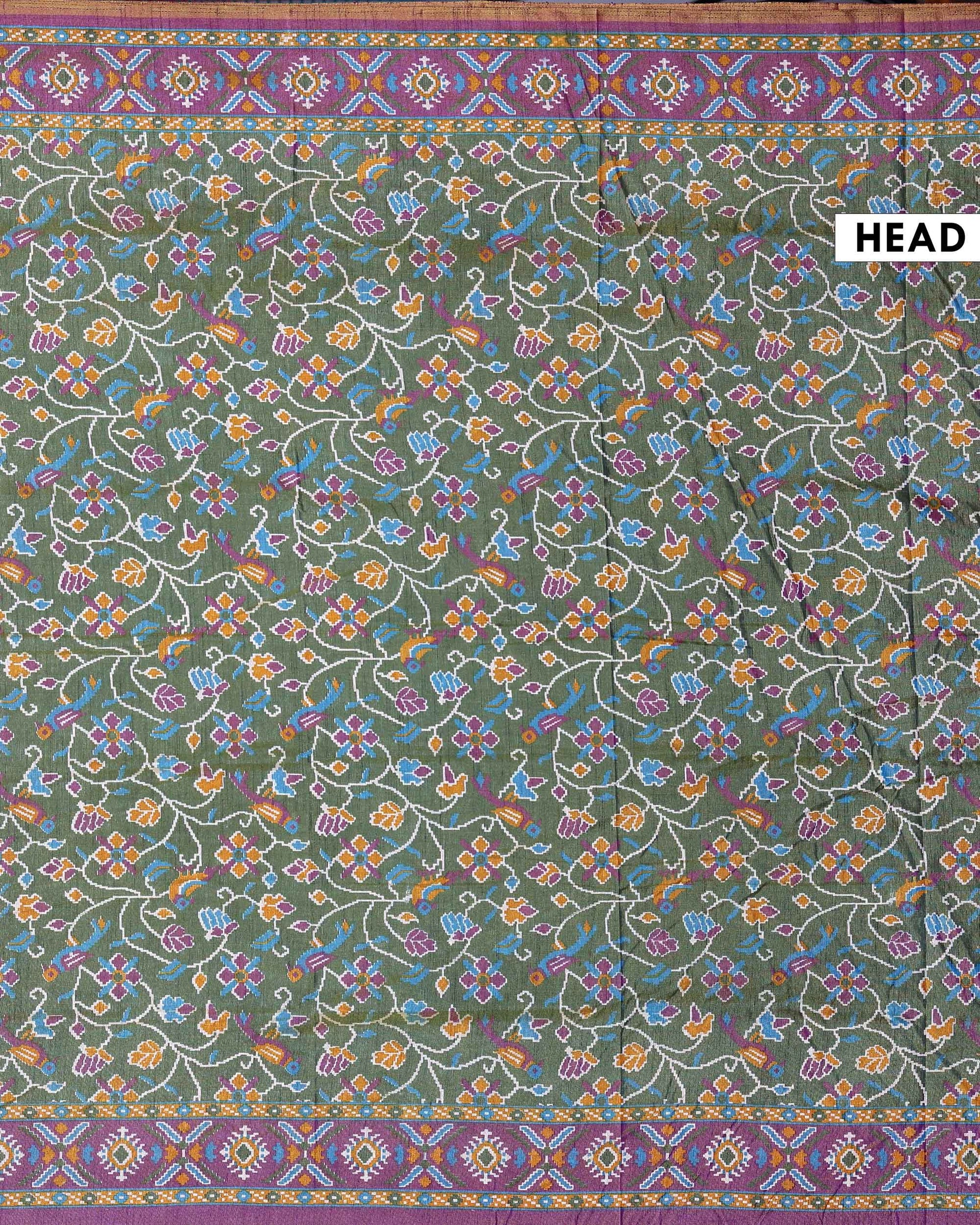 Elegant Patola Semi Silk Saree with Floral Inspired Patterns and an Intricate Border - Green