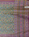 The saree is complemented by a rich zari border, making it an ideal choice for festive occasions and weddings.
