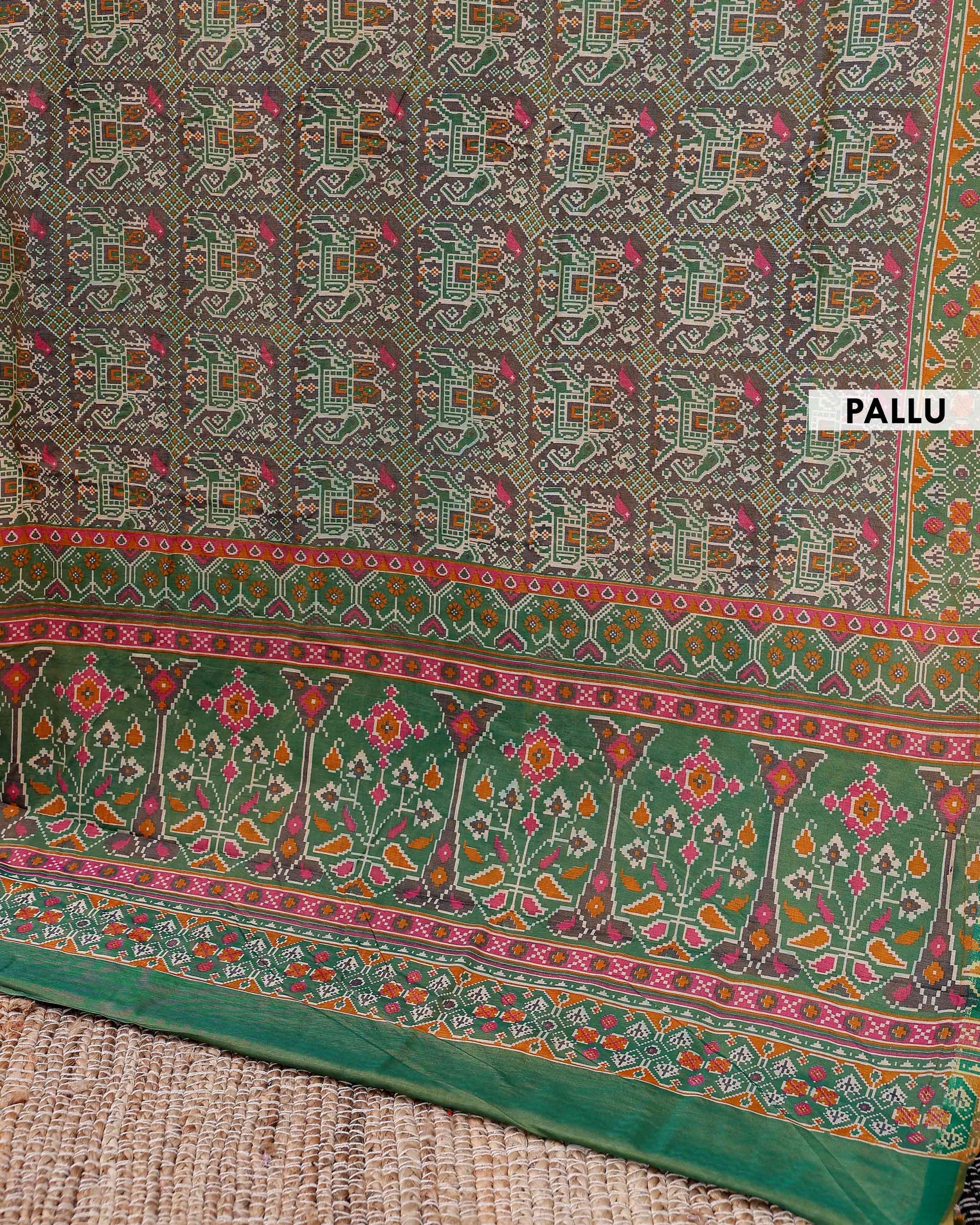 - Elegant Patola Silk Saree, intricate double ikat weaving and a vibrant, traditional design.