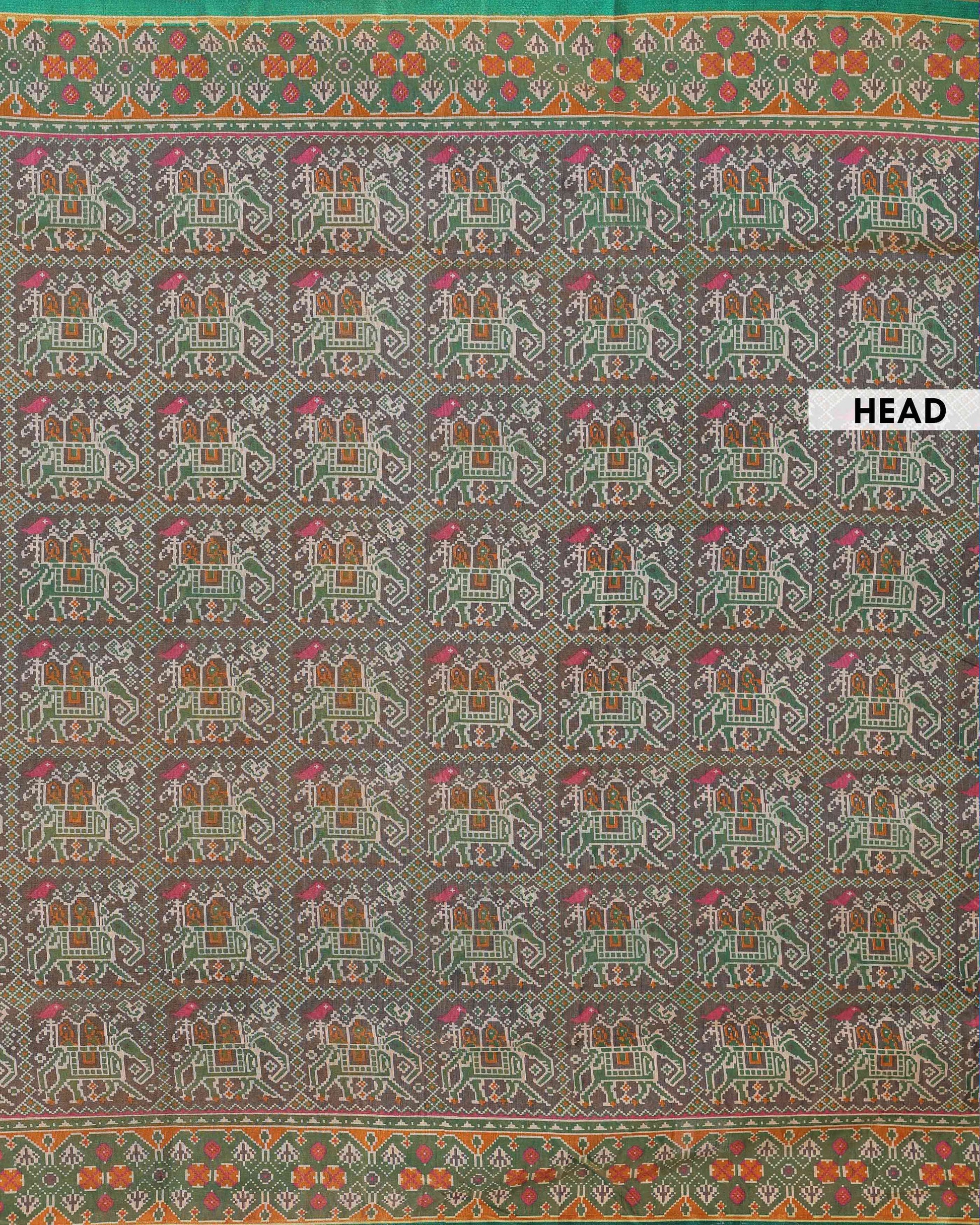 Elegant Patola Semi-Silk Saree with Intricate Geometric and Floral Motifs - Brown