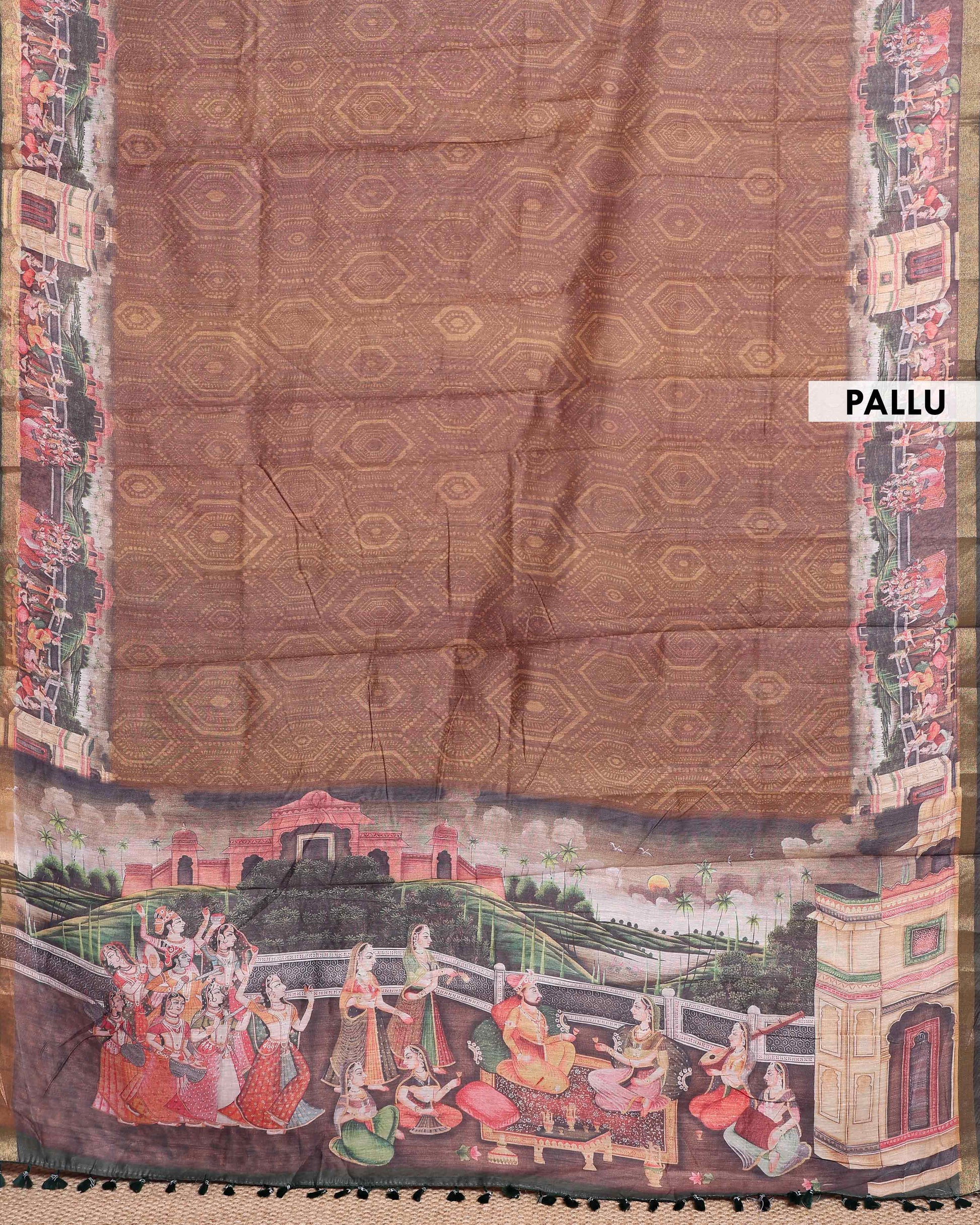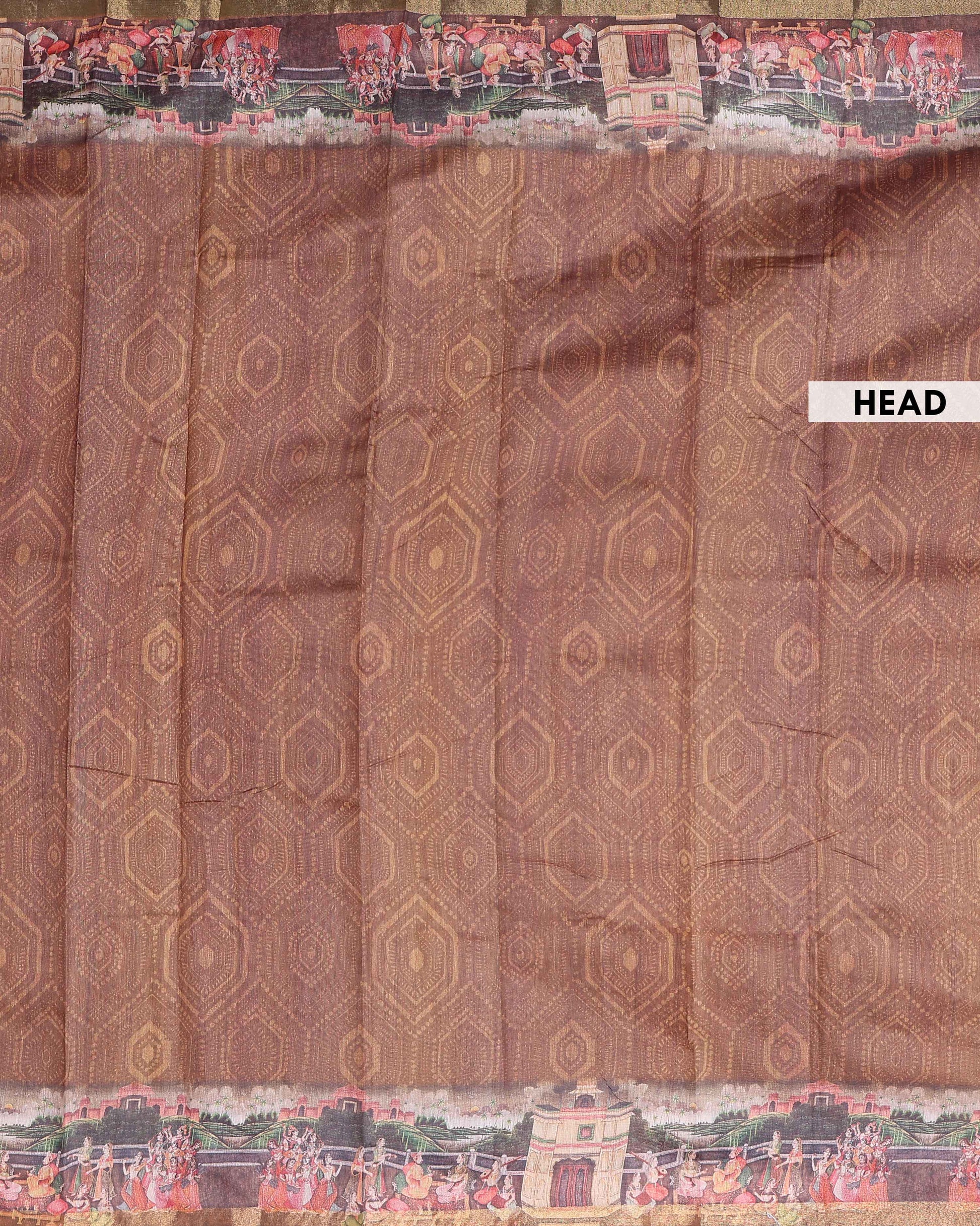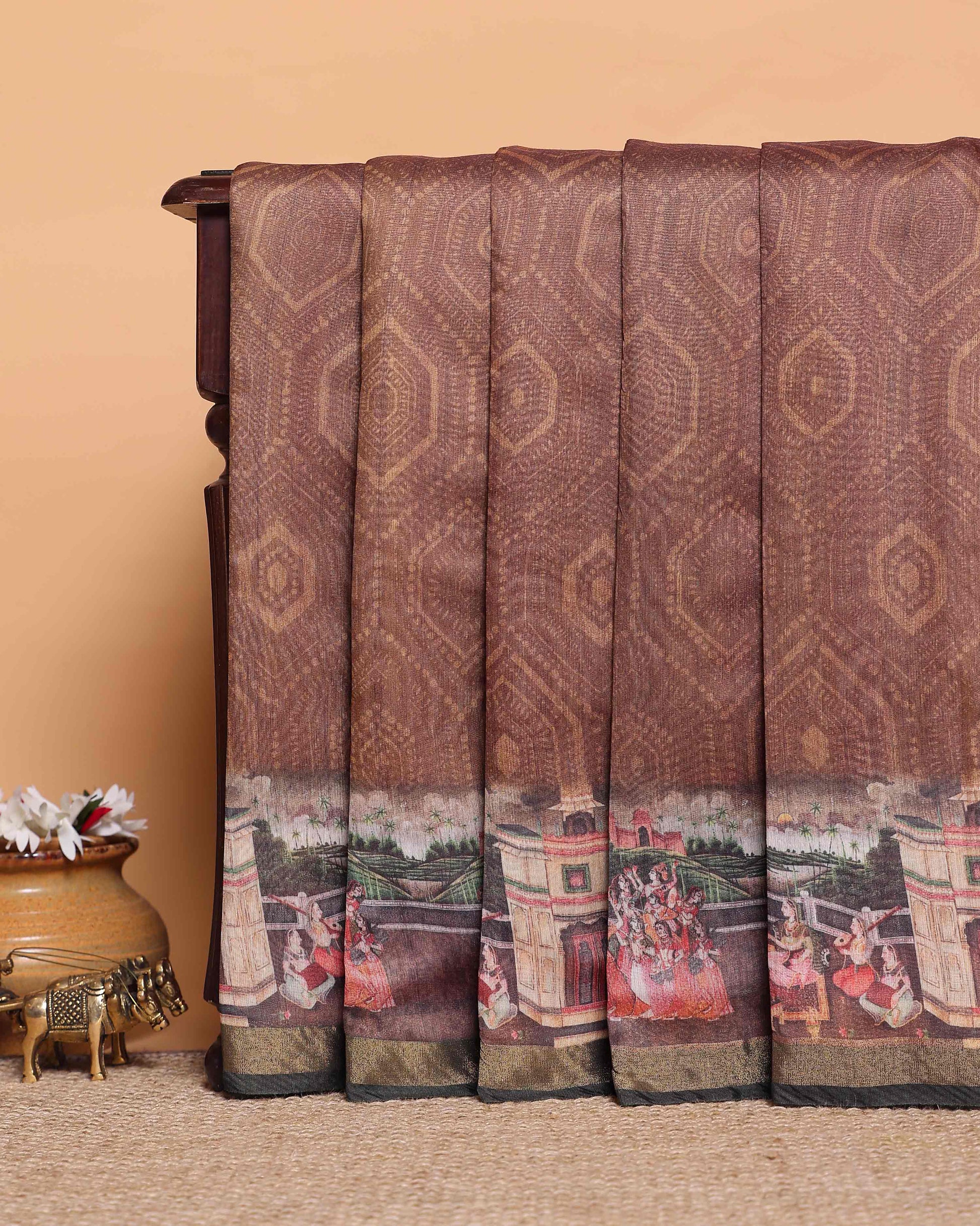 Elegant Printed Semi Silk Saree with Elaborate Border and Pallu - Brown