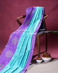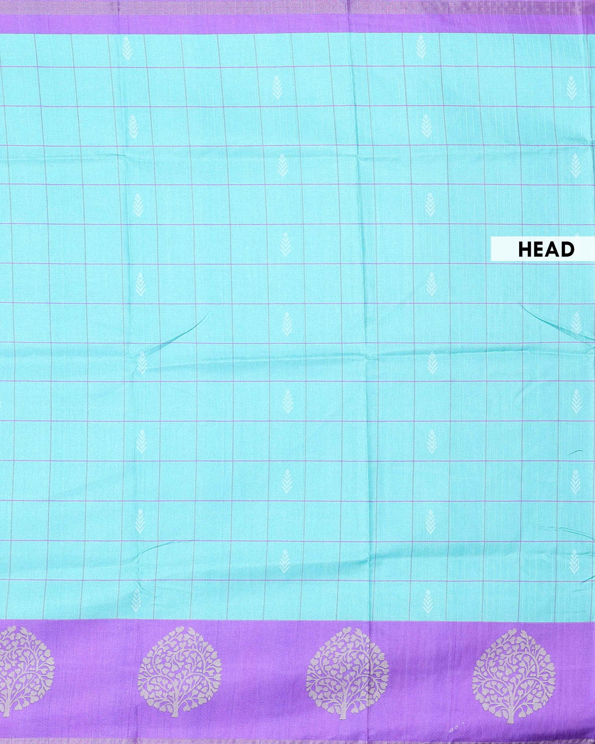 Elegant Raw Silk Saree with Checked Body Design and Traditional Tree Motif Woven Border - Aqua Green
