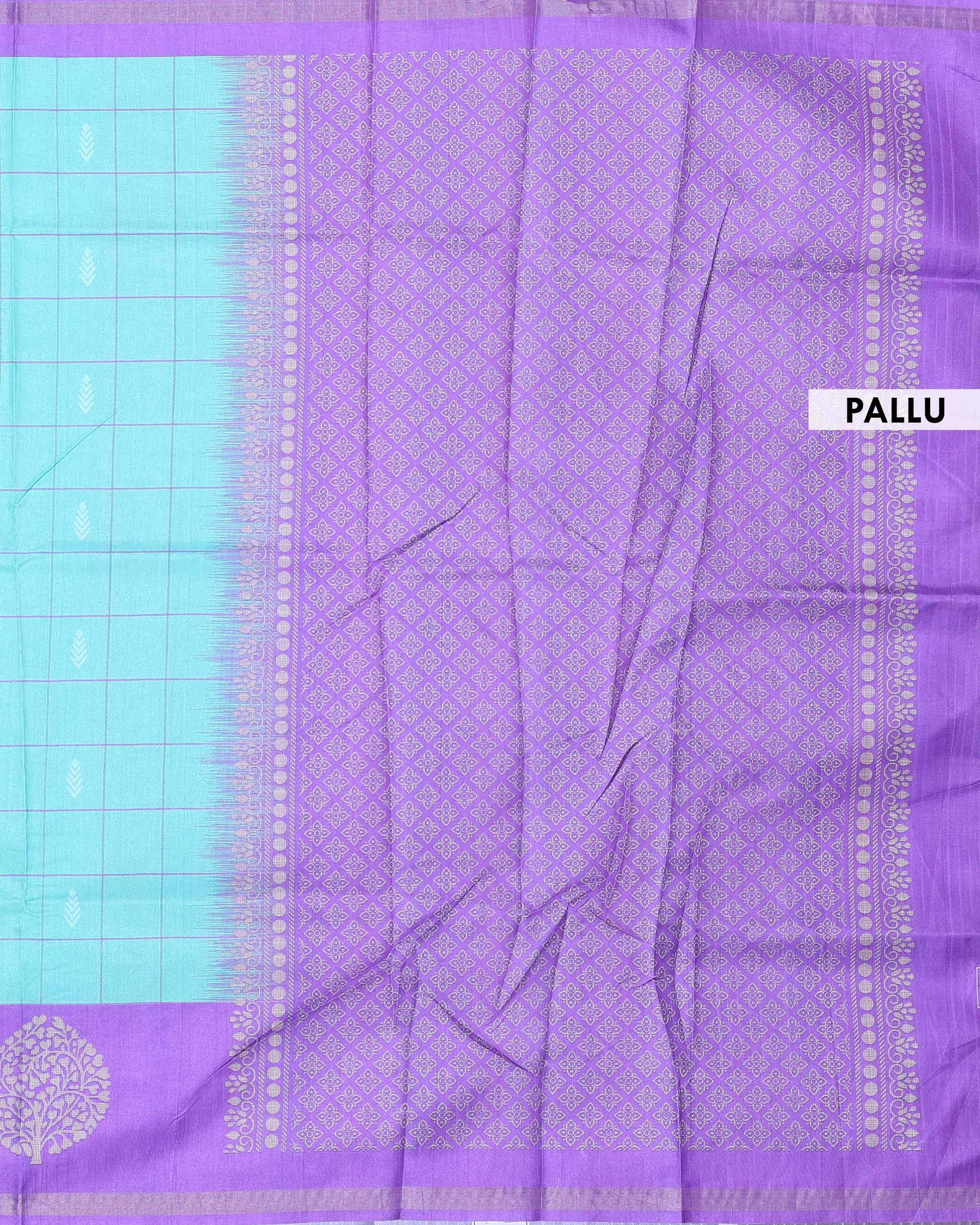 - Elegant Raw Silk Saree a refined checked body pattern complemented by a richly woven traditional motif border, offering a perfect blend of heritage and modern sophistication
