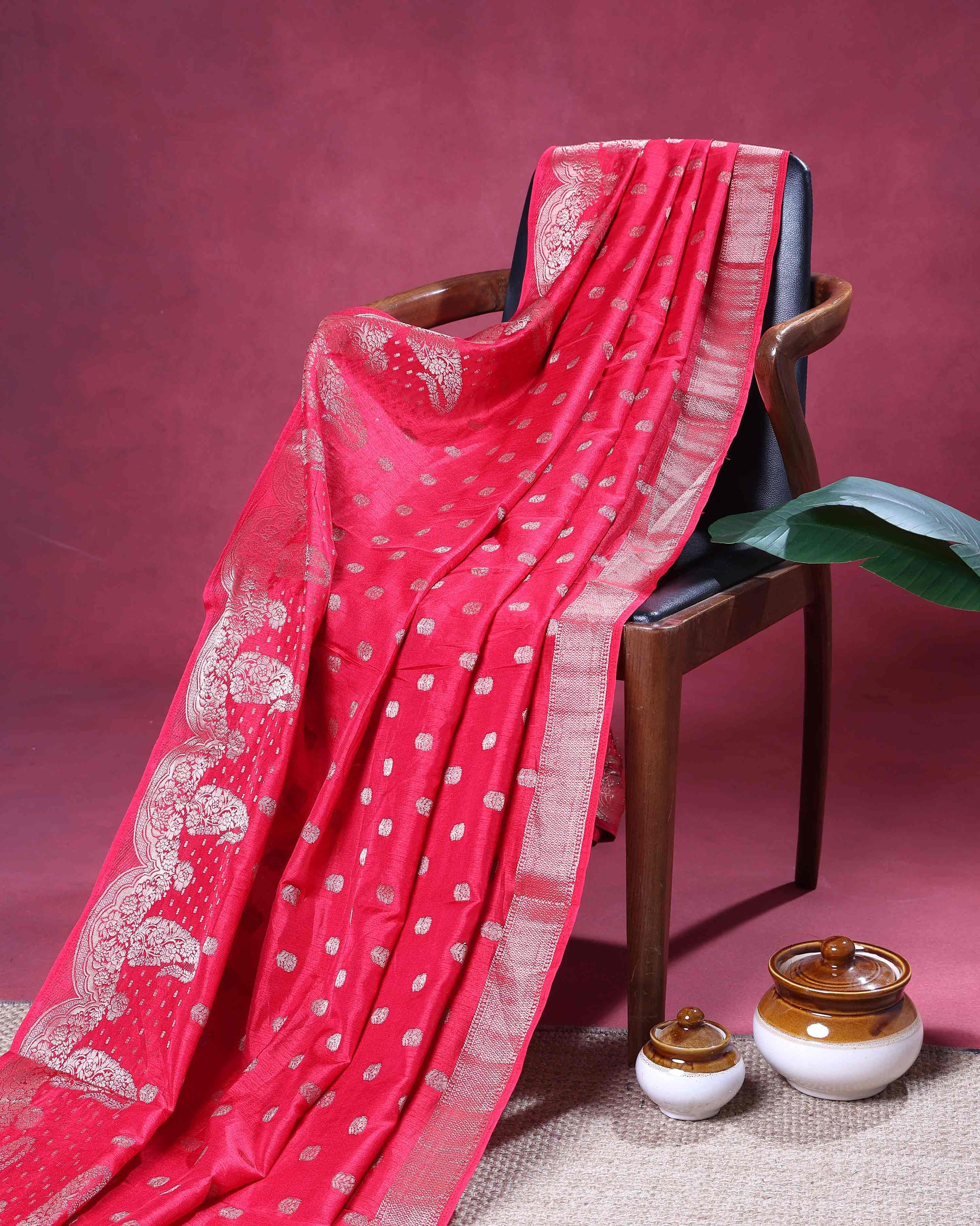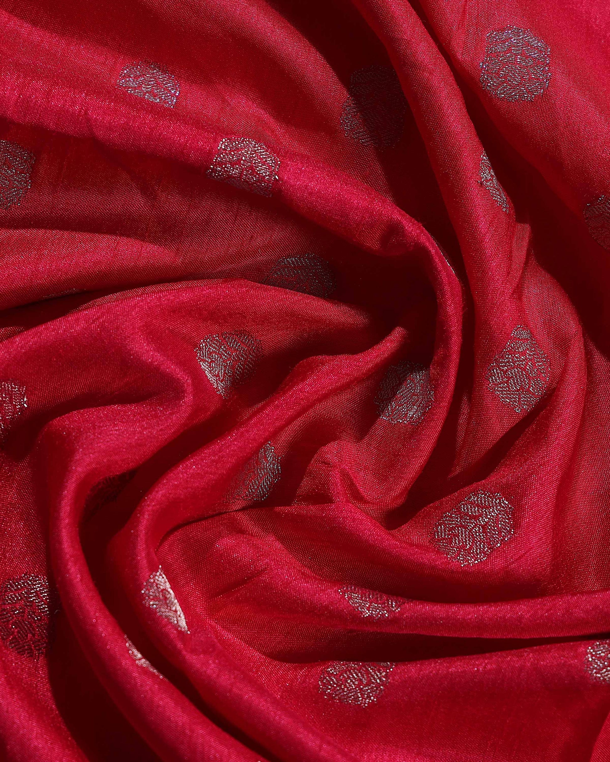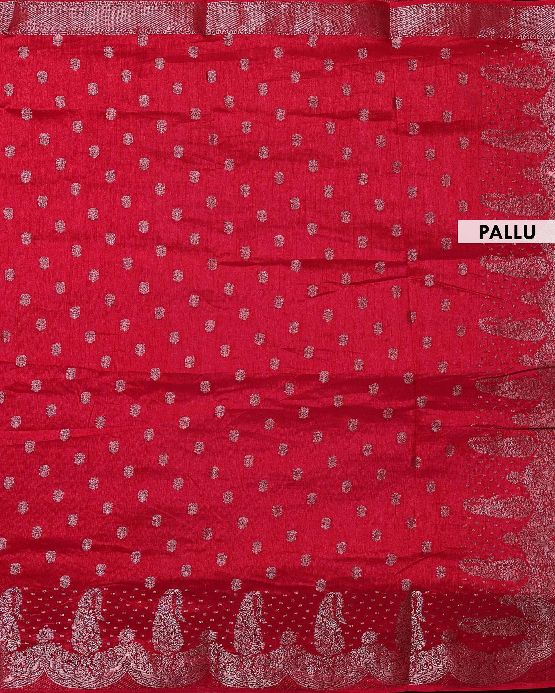 Elegant Semi Banarasi Saree with All over Silver Buti Motifs Pichwai Zari Woven Border - Red