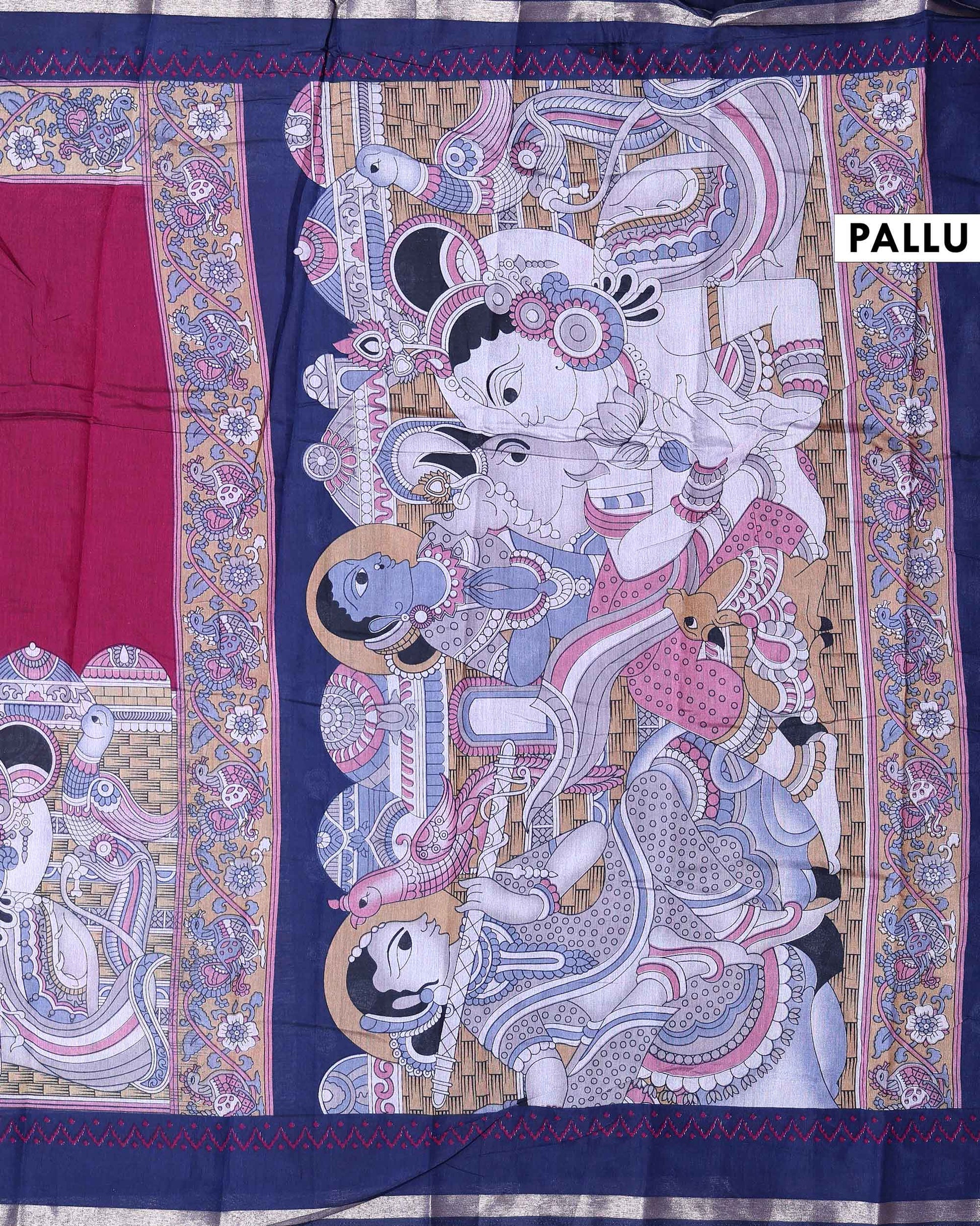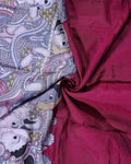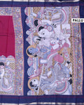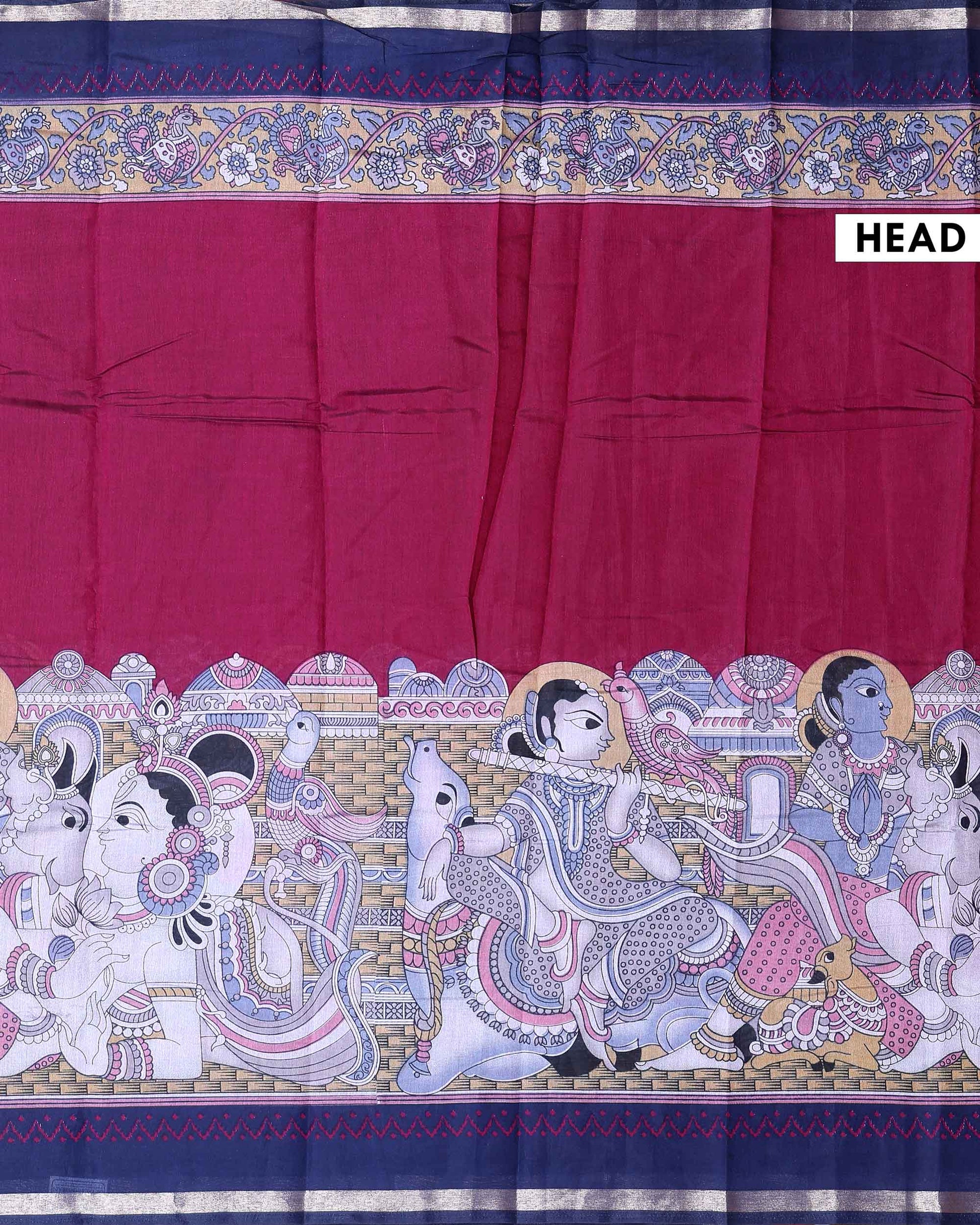 Elegant Semi Chanderi Saree with a Half Plain and Half Madubani Inspired Body and a Plain Border - Burgundy