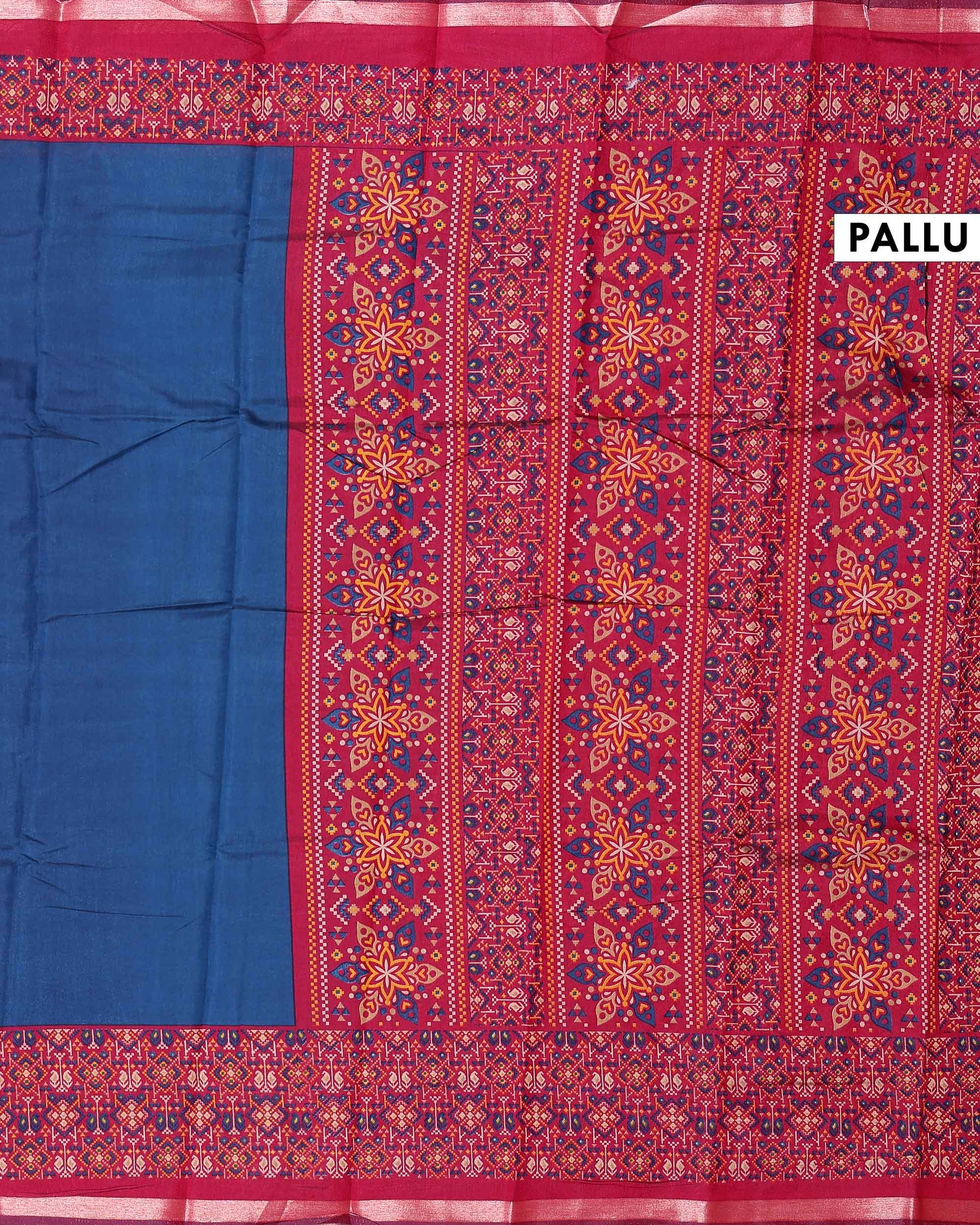 Elevate your style with this classic Blue chanderi saree featuring a beautiful Floral inspired print and an plain border.