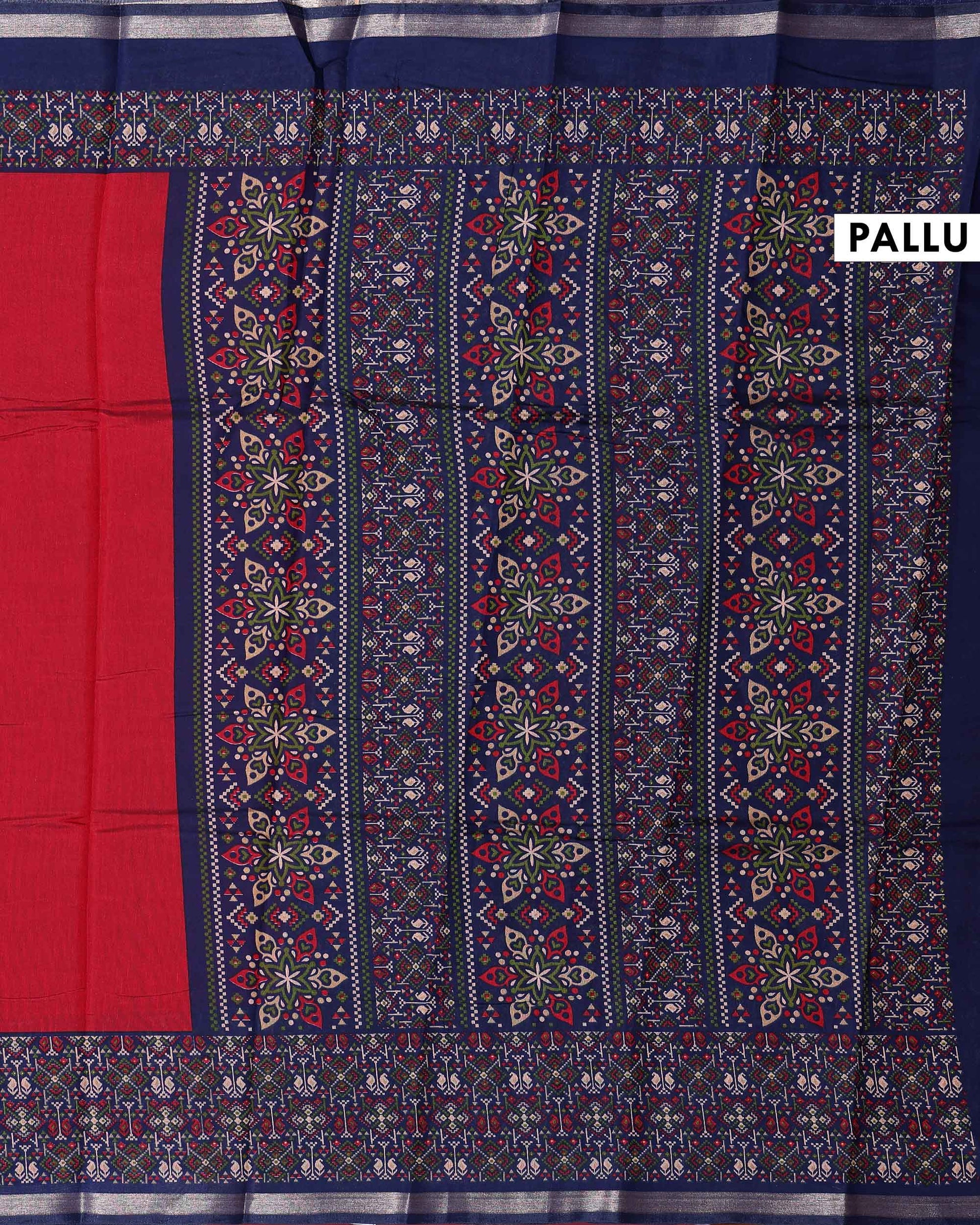 Elevate your style with this classic Red chanderi saree featuring a beautiful Floral inspired print and an plain border.