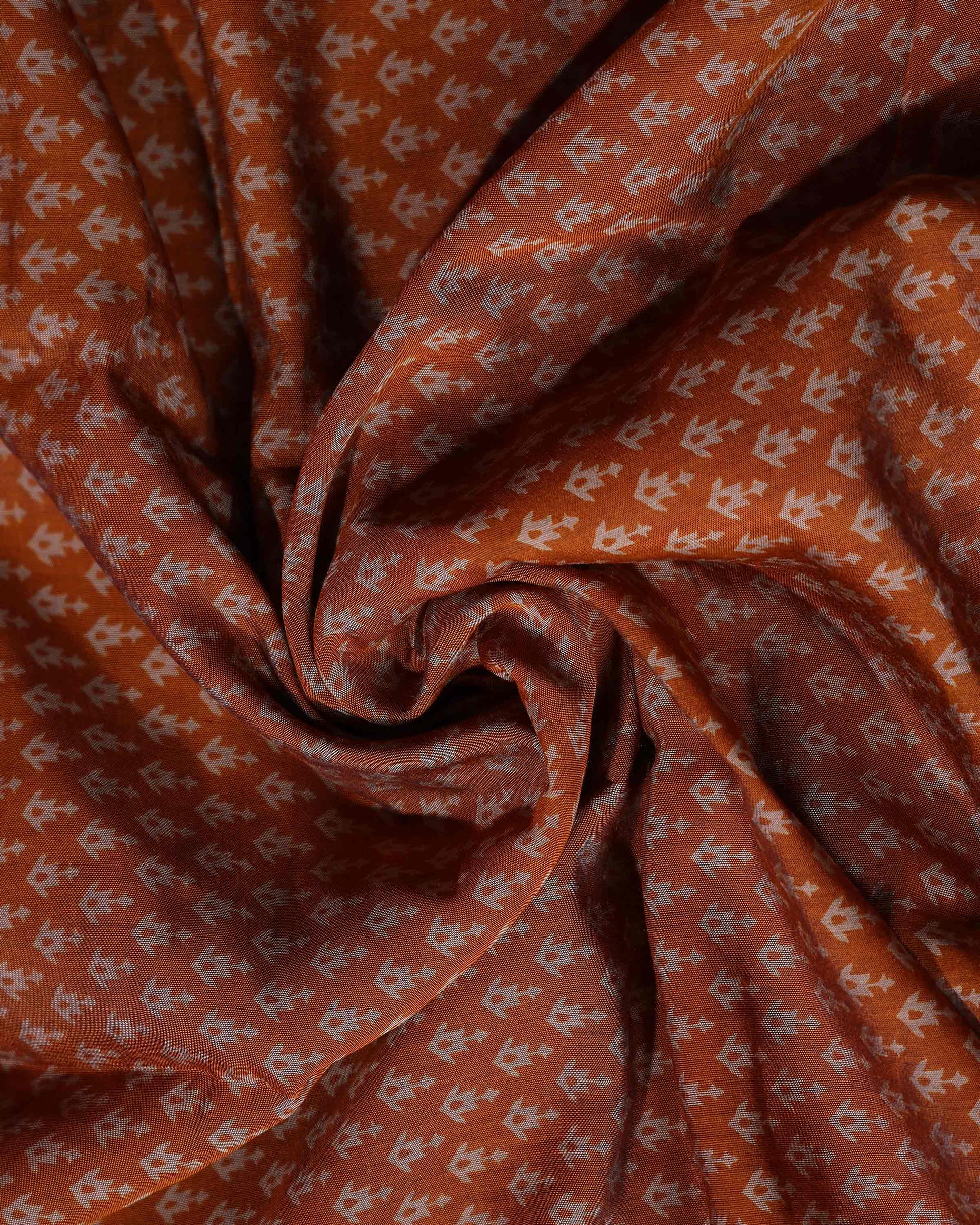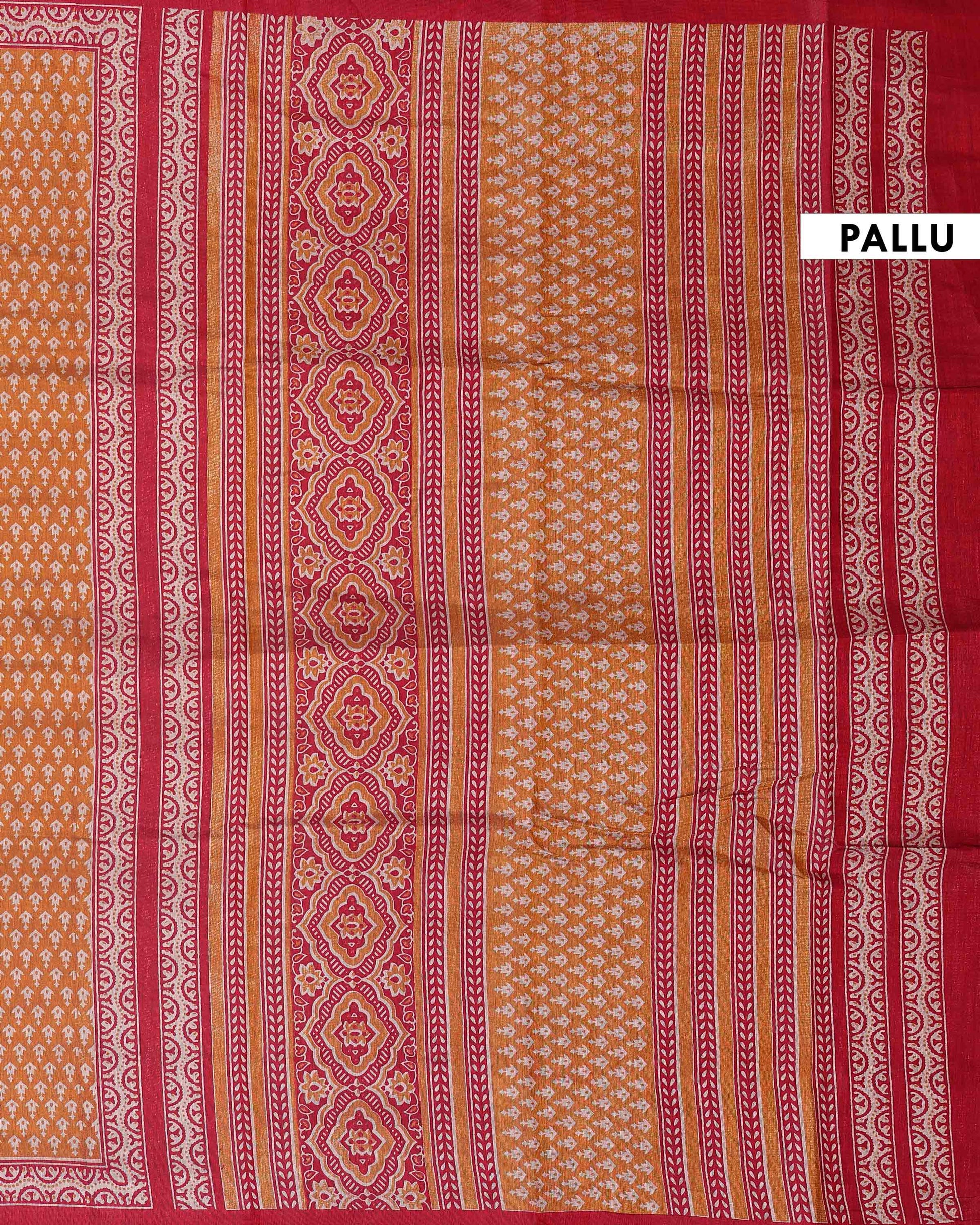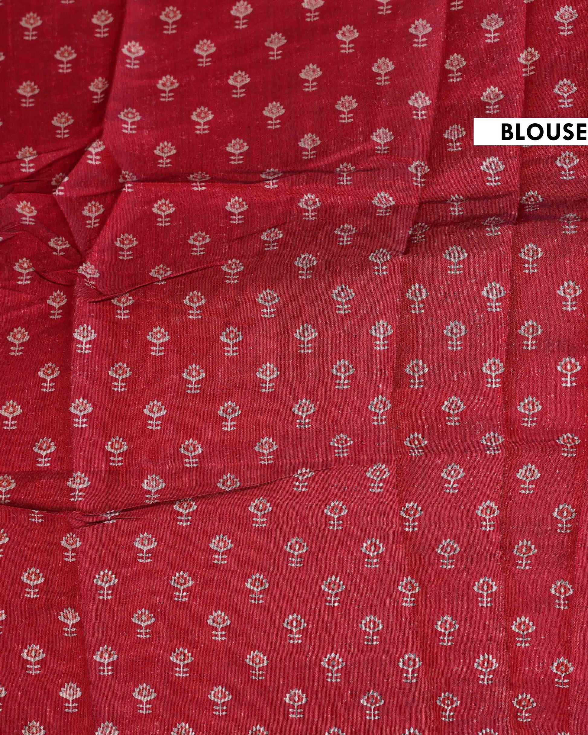- Graceful Semi Chanderi Saree featuring a smooth lustrous weave, adorned with delicate all-over motifs and traditional woven border detailing.