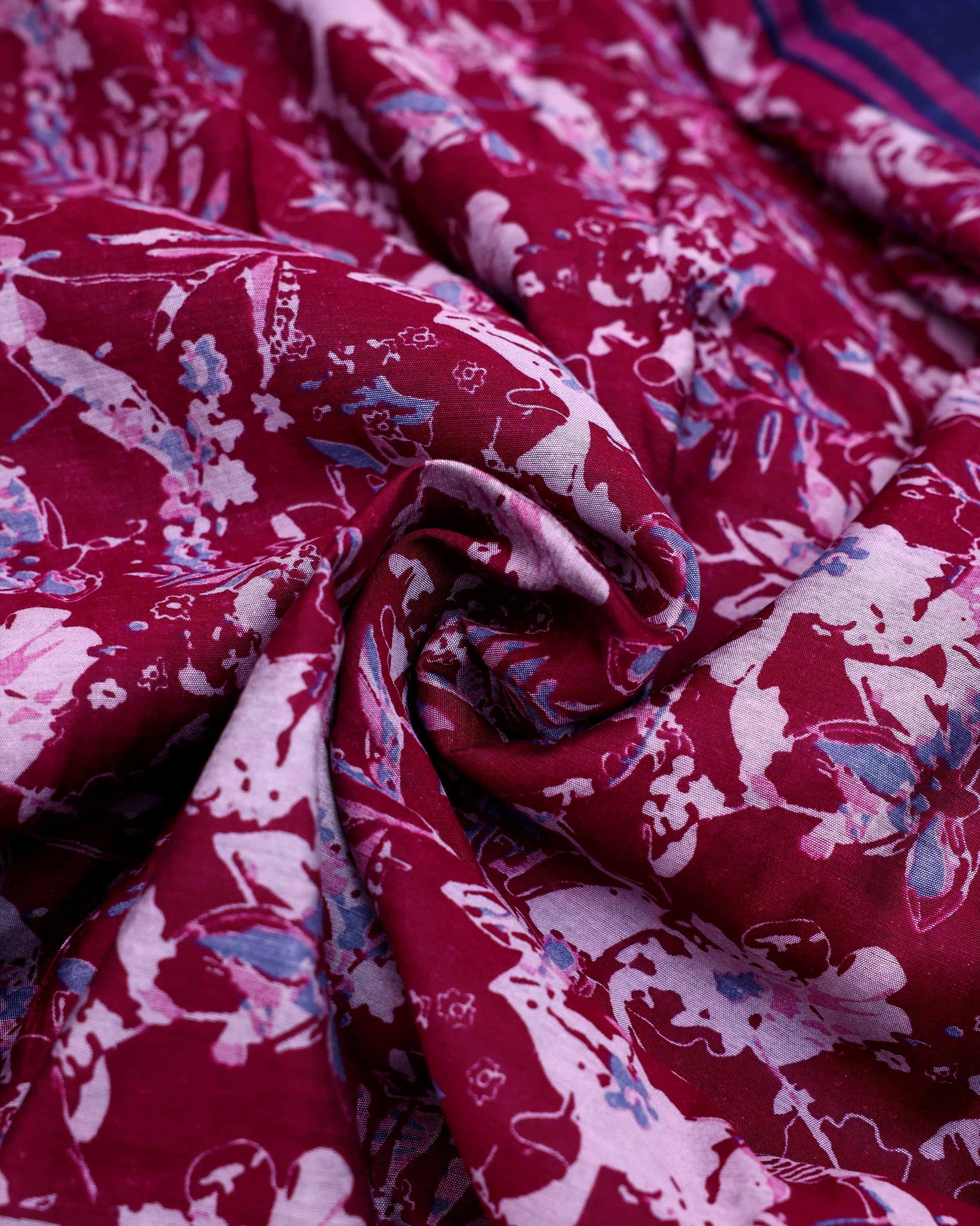- This is an elegant Purple colour semi chanderi saree with Floral inspired all over print and intricate golden zari border perfect for everyday elegance.