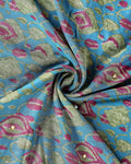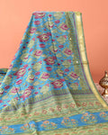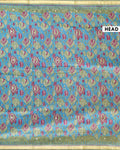 Elegant Semi Chanderi Saree with Floral Inspired Print and Zari Border - Blue