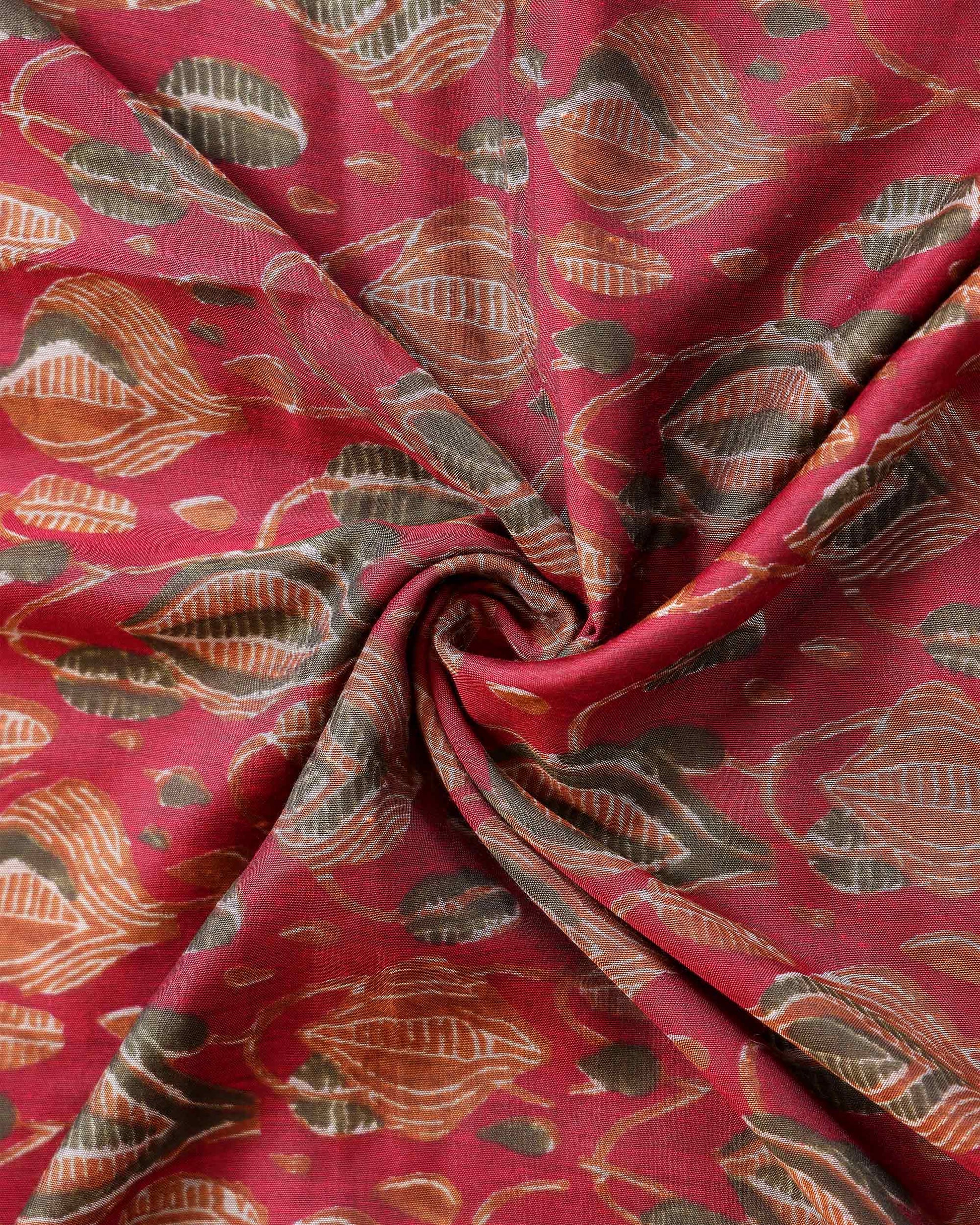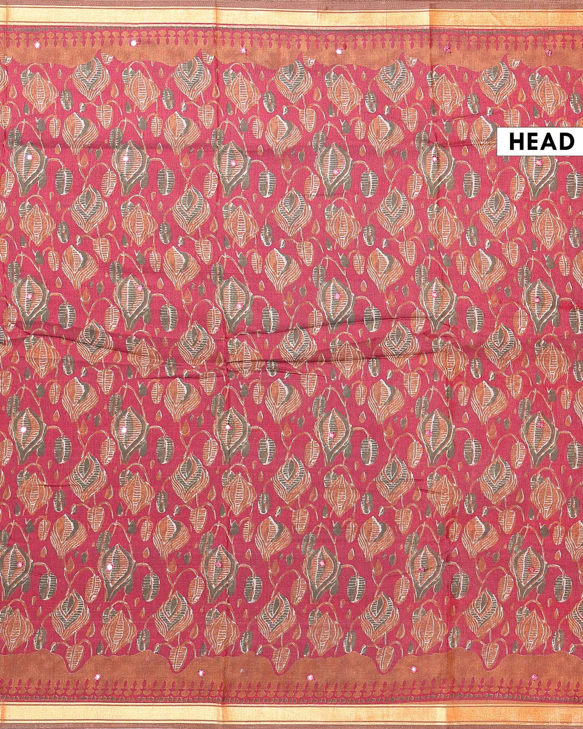 - This is an elegant Red colour semi chanderi saree with Floral inspired all over print and intricate golden zari border perfect for everyday elegance.