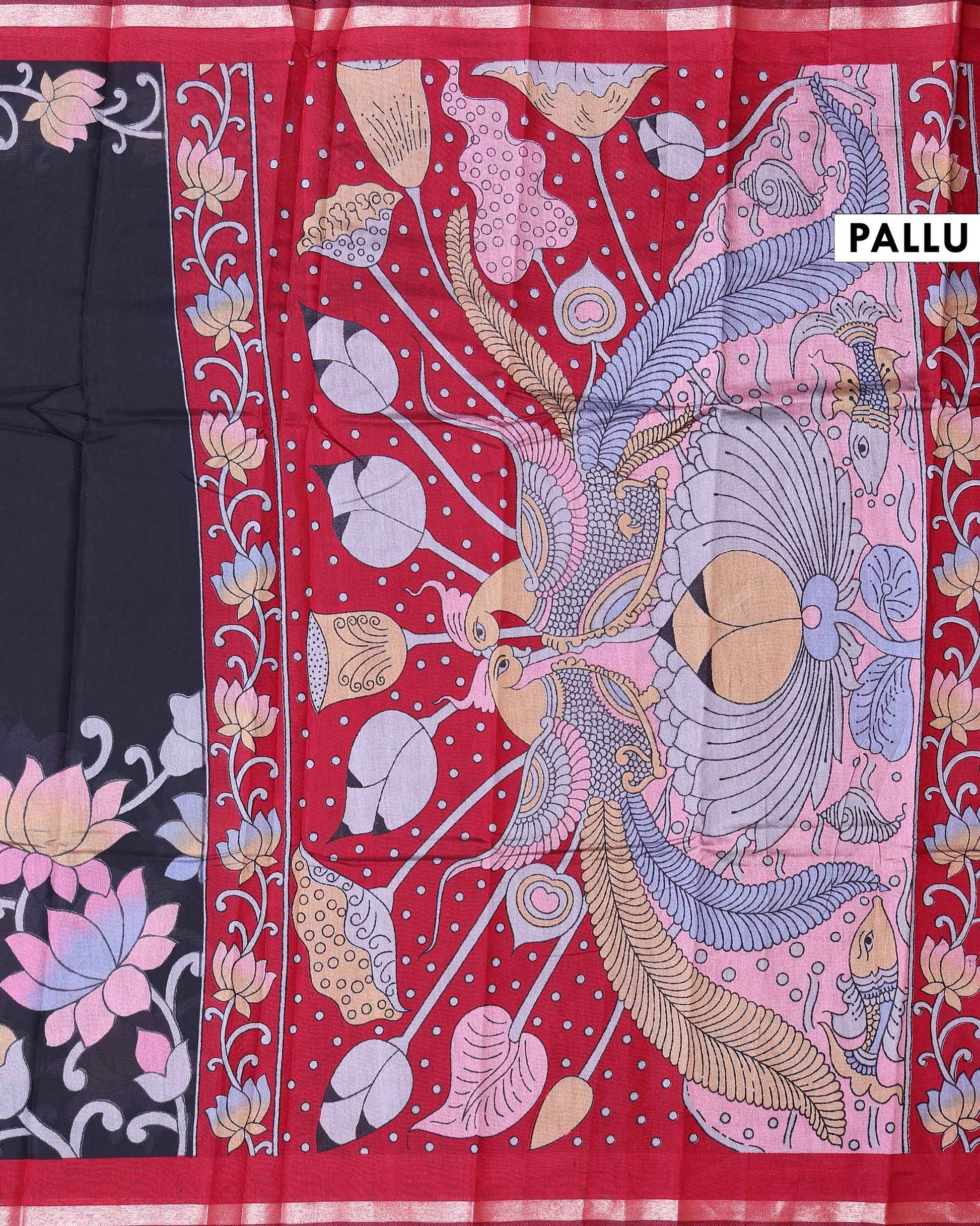 Elevate your style with this classic Black chanderi saree featuring a beautiful Floral inspired print and an intricate zari border.