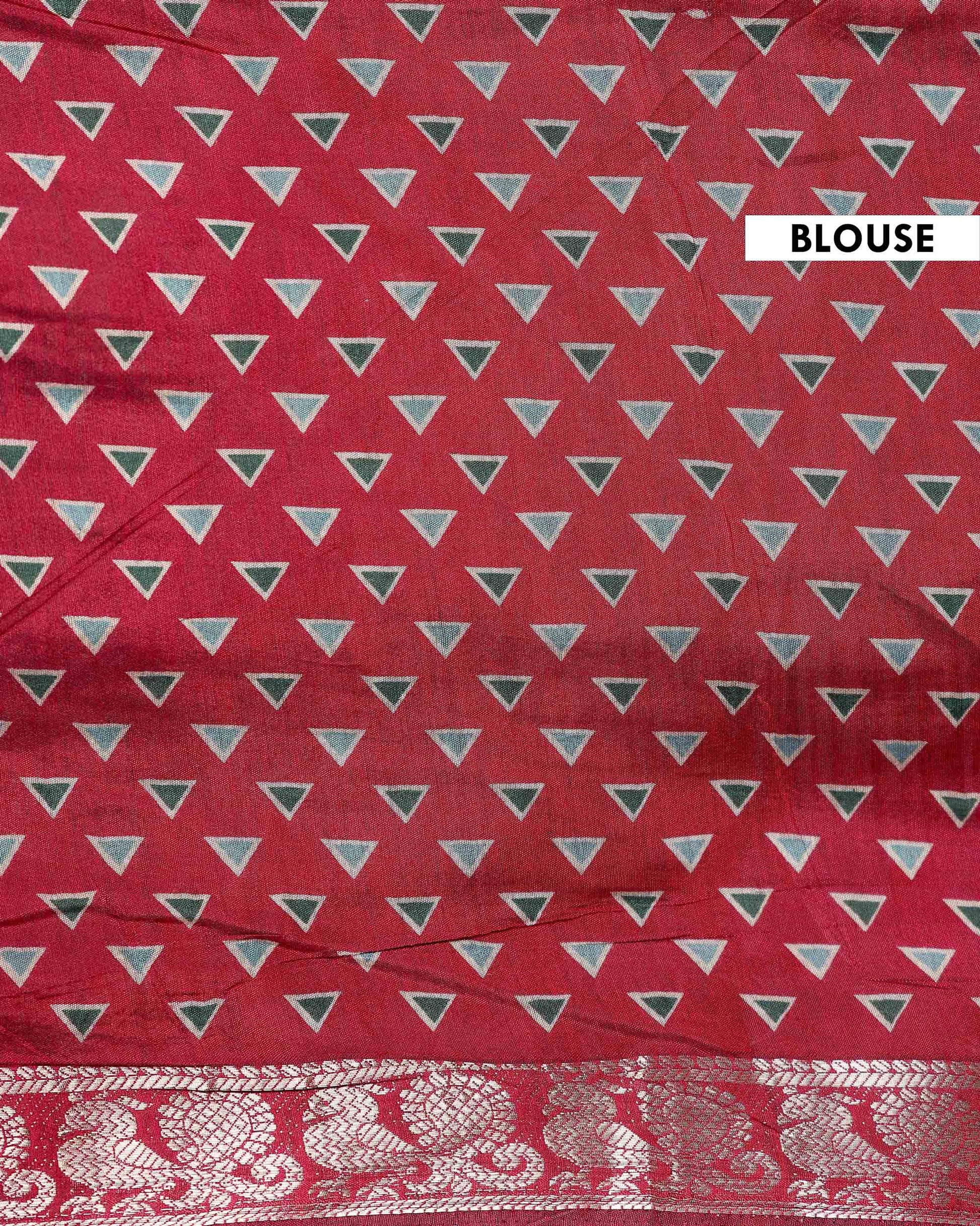 - Elevate any occasion with this stunning Semi Chanderi saree intricate ethnic floral motifs and a rich maroon zari woven border