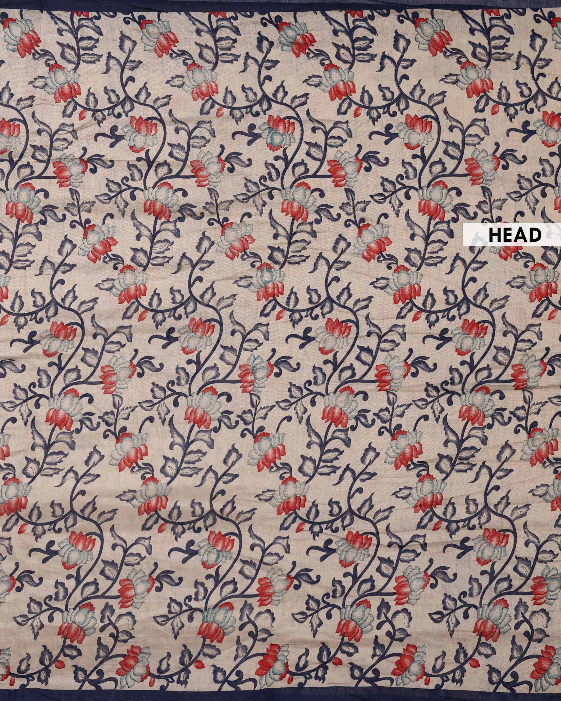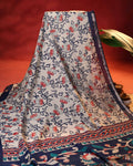 Elegant Semi Chanderi Saree with Floral Motifs Intricate Contrast Border and Traditional Pallu - Cream