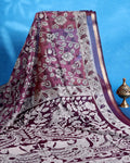 - This elegant maroon Semi Chanderi Saree intricate floral and traditional motifs, perfect for festive occasions or weddings