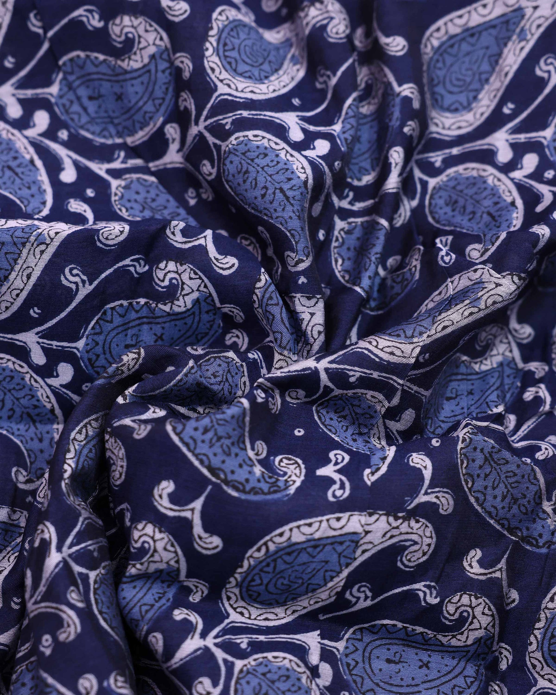- This is an elegant Blue colour semi chanderi saree with paisey inspired all over print and intricate golden zari border perfect for everyday elegance.