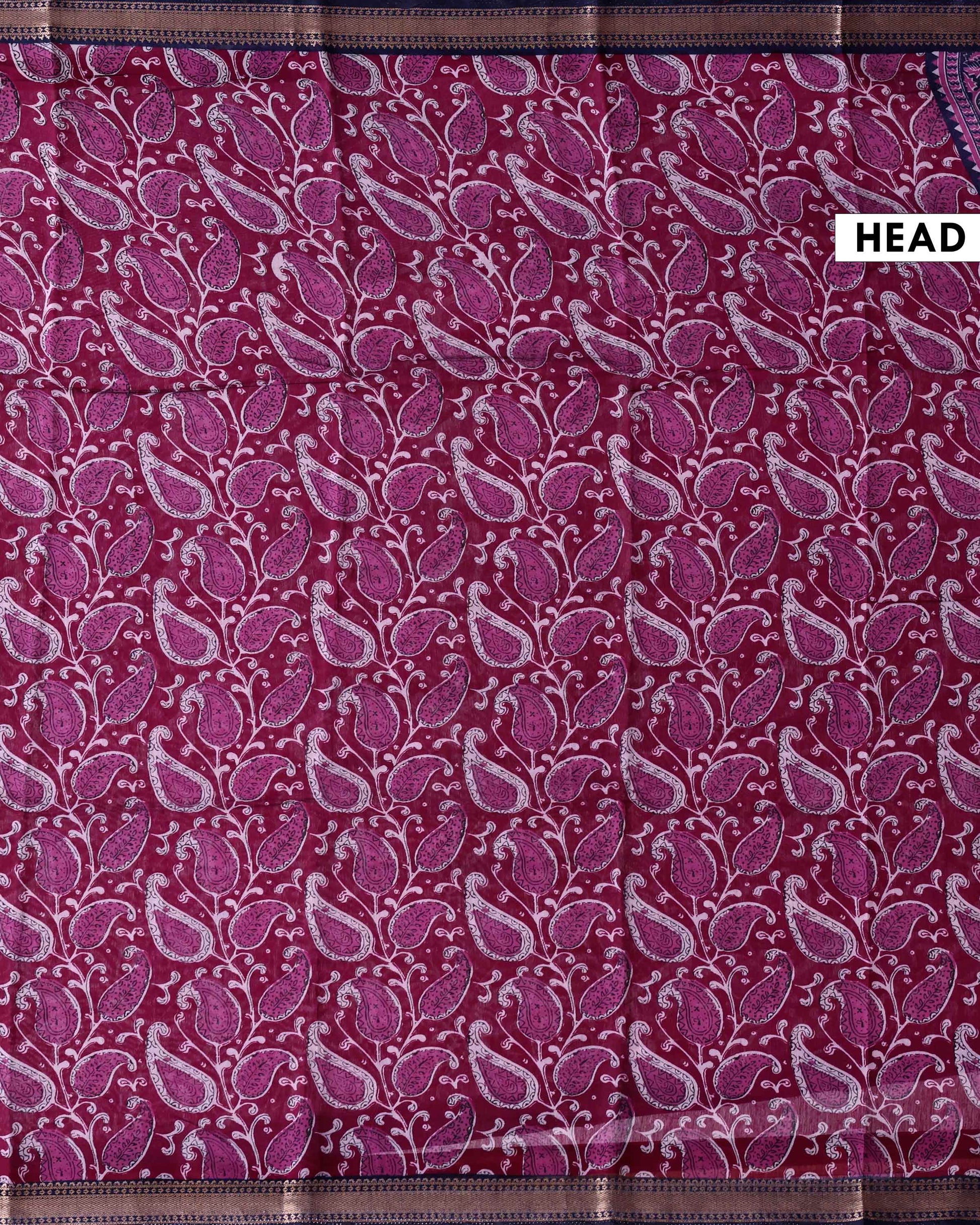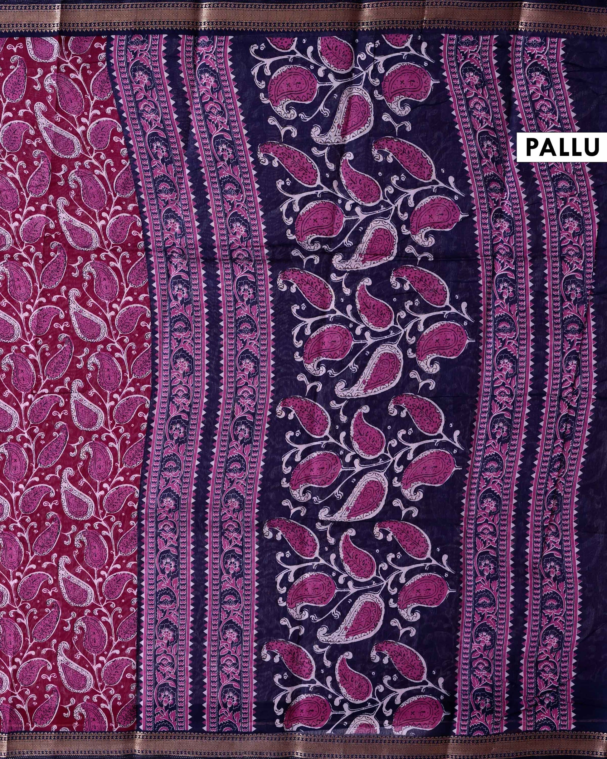 Elegant Semi Chanderi Saree with Paisley Inspired Print and Contrast Zari Border - Purple