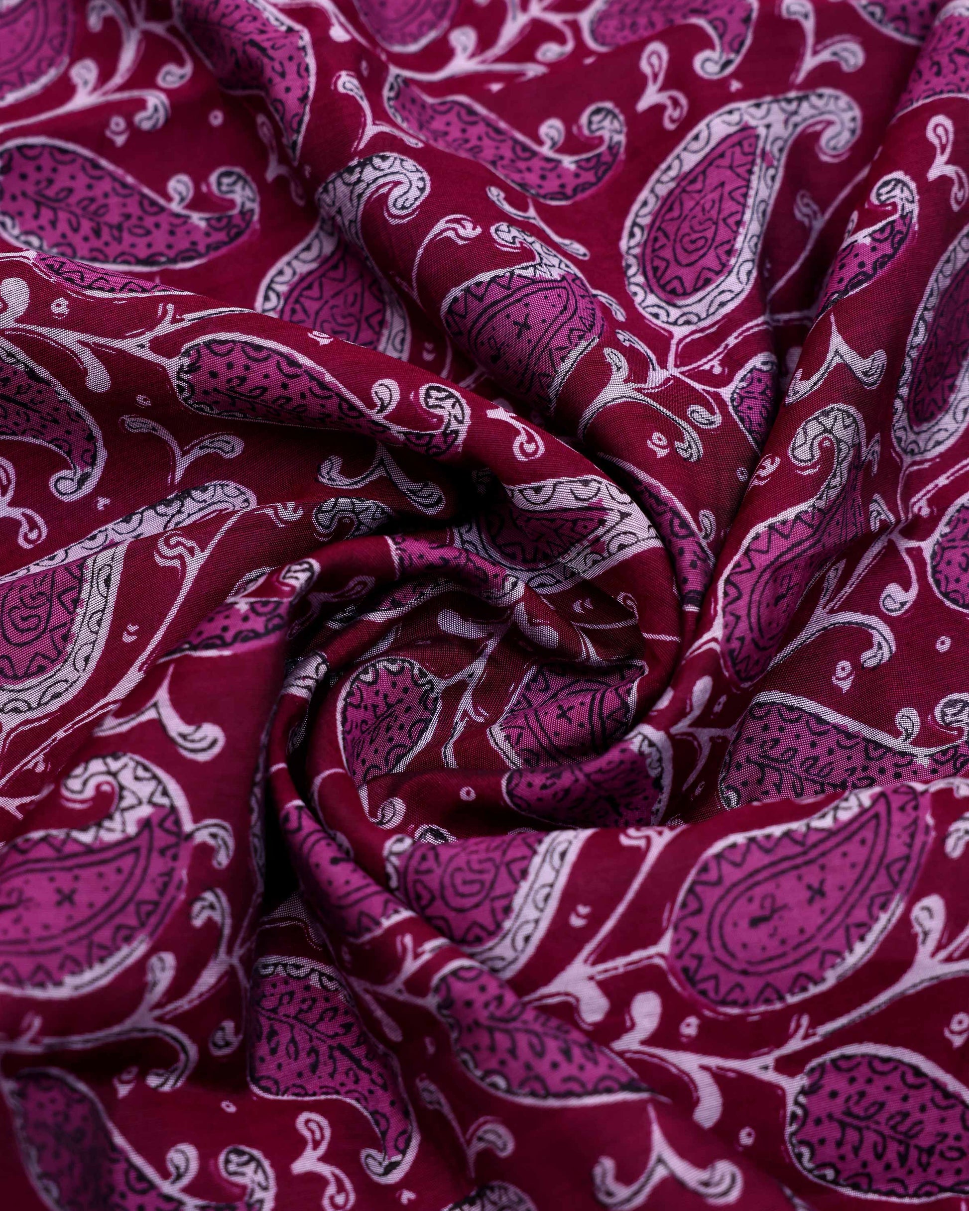 - This is an elegant Purple colour semi chanderi saree with paisey inspired all over print and intricate golden zari border perfect for everyday elegance.