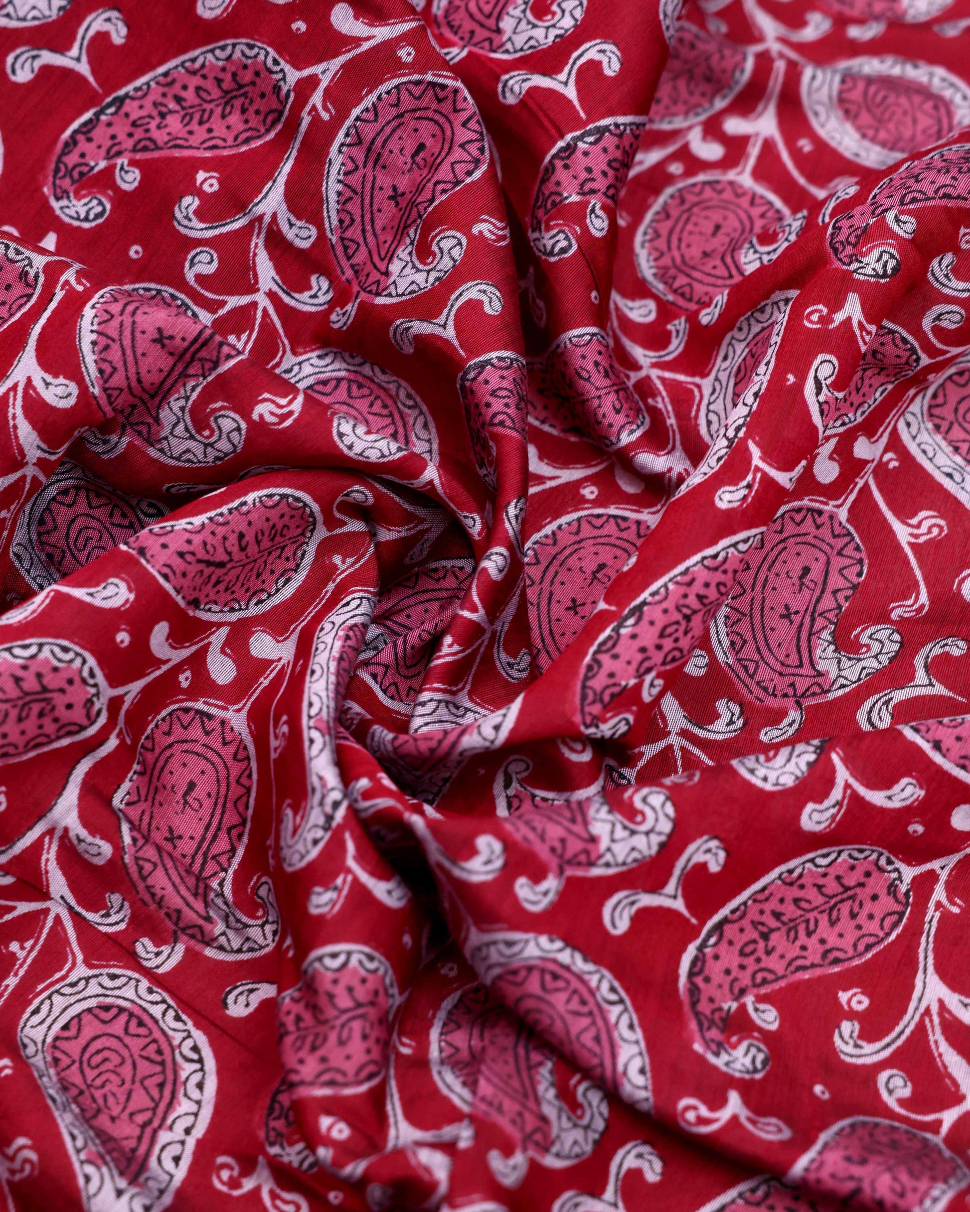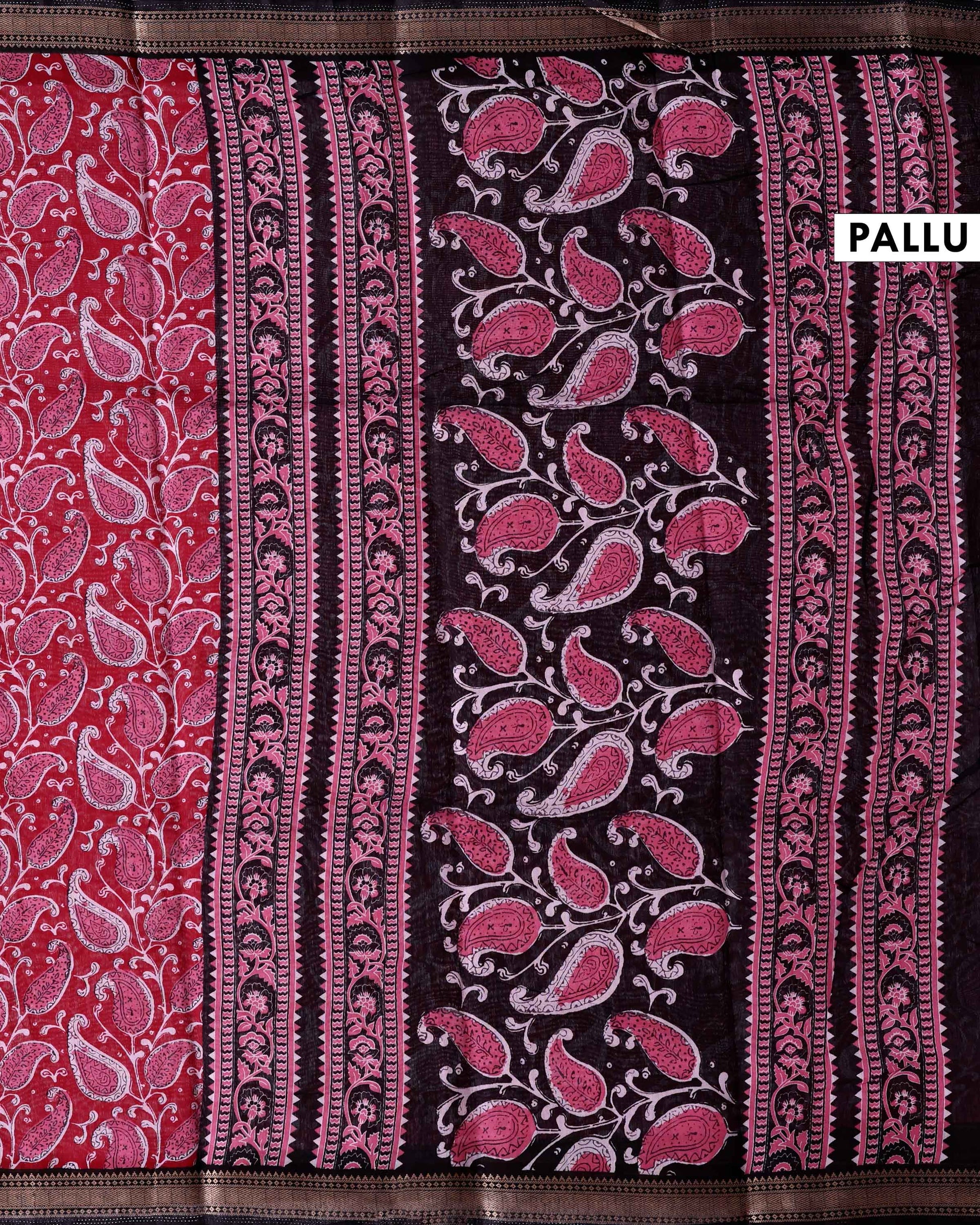 - This is an elegant Red colour semi chanderi saree with paisey inspired all over print and intricate golden zari border perfect for everyday elegance.
