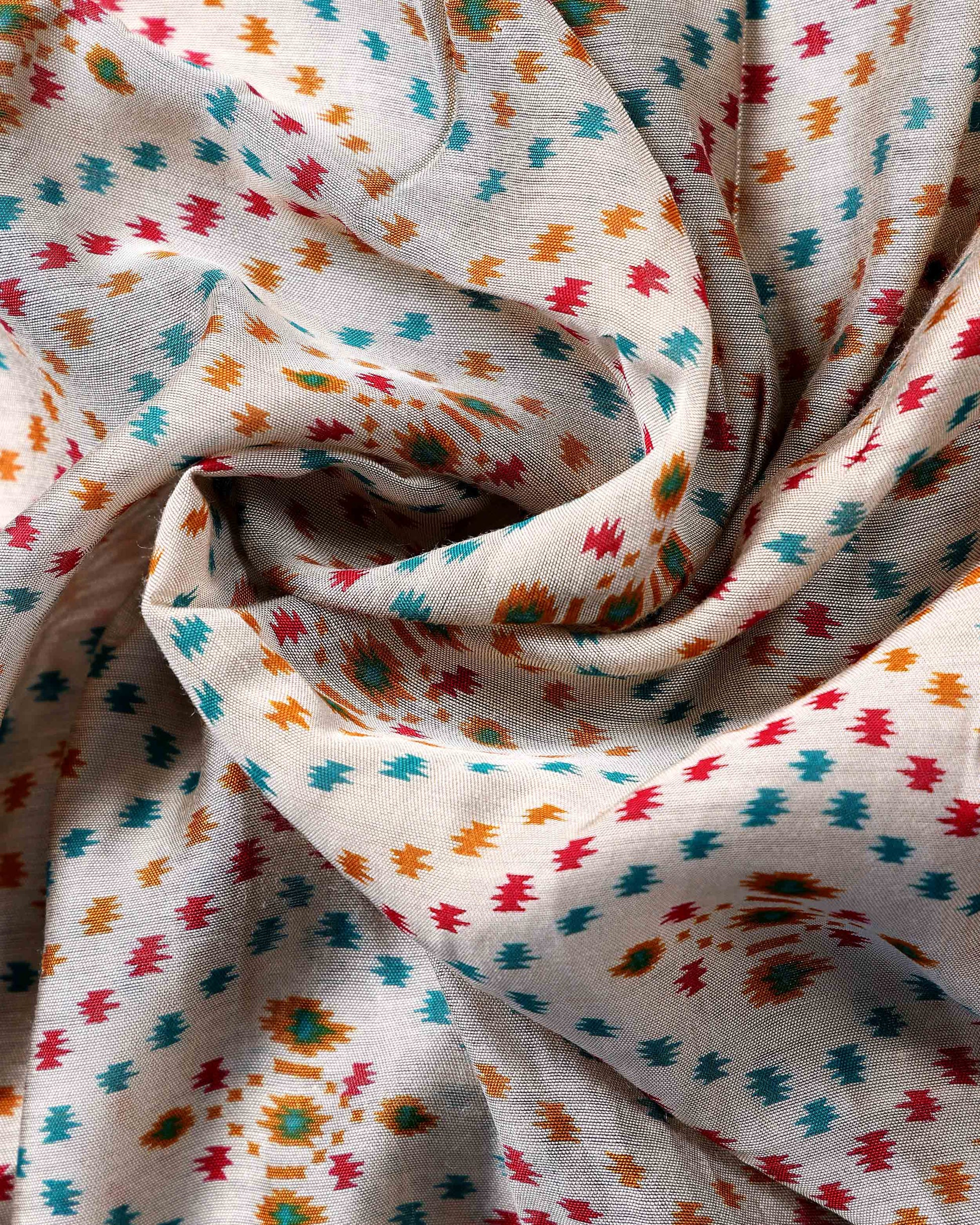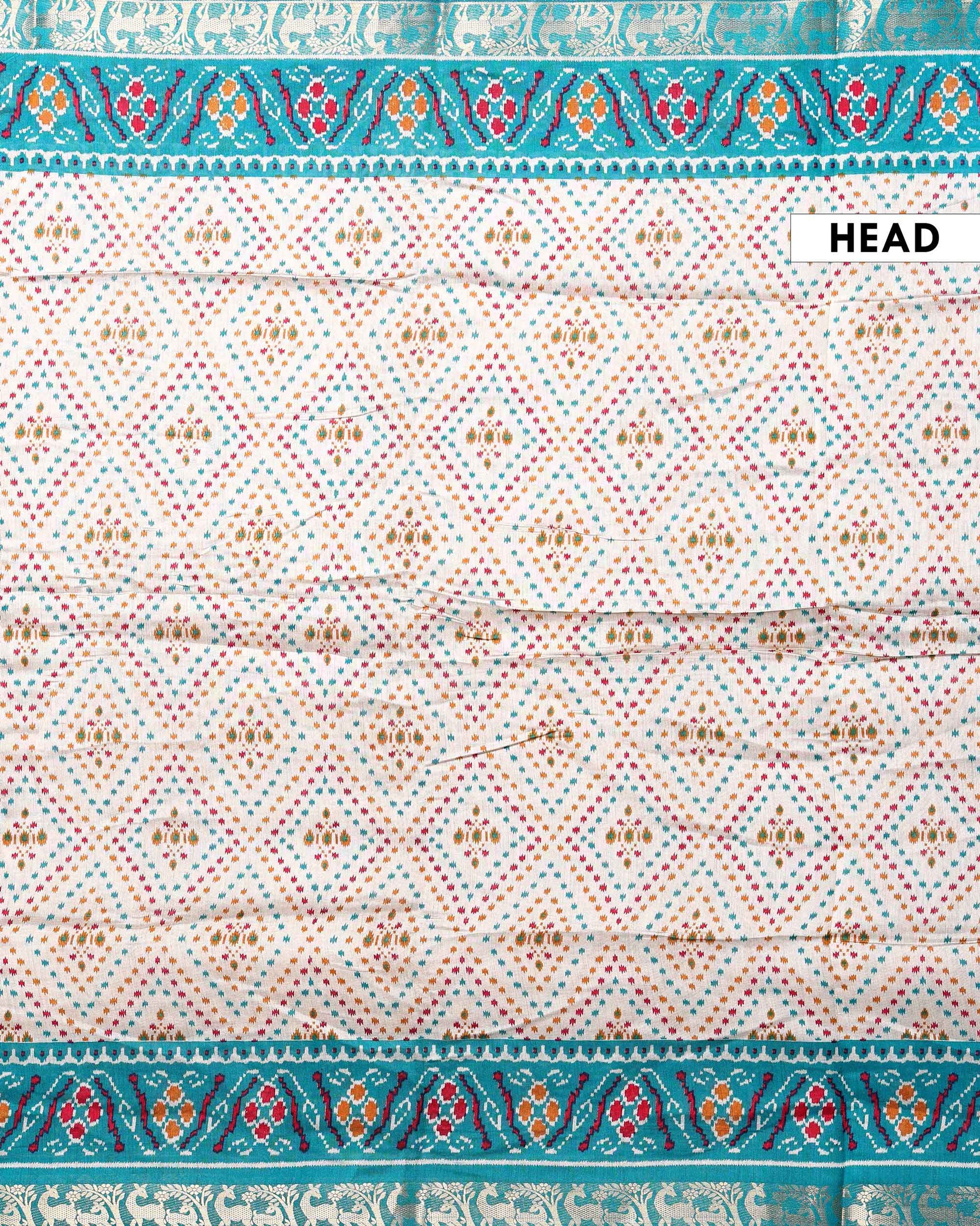 Elegant Semi Chanderi Saree with Pochampally Inspired Motifs & Woven Border - Off White