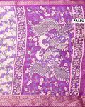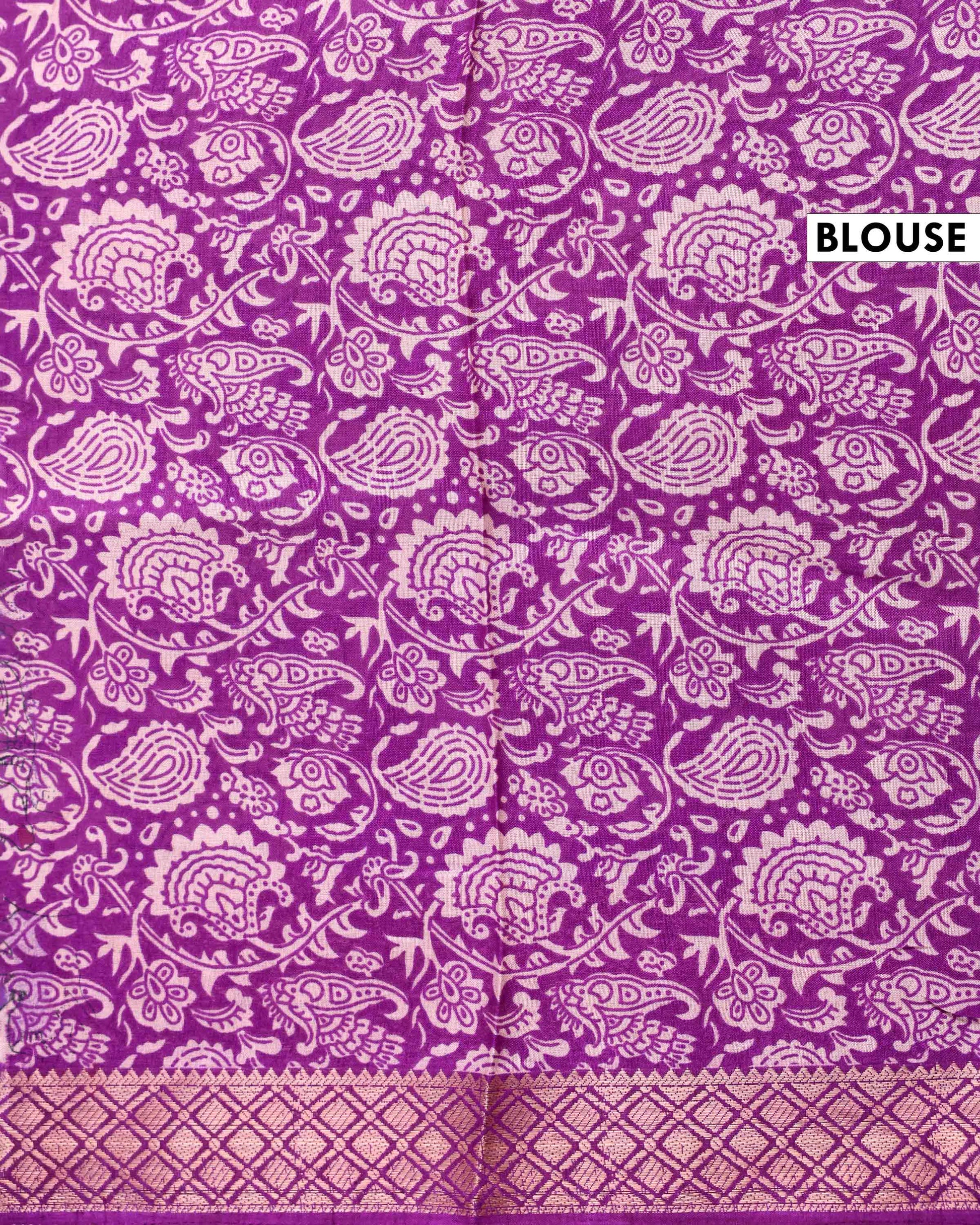 Elegant Semi Chanderi Saree with Traditional Animal Motif Print and Contrasting Zari Woven Border - Purple