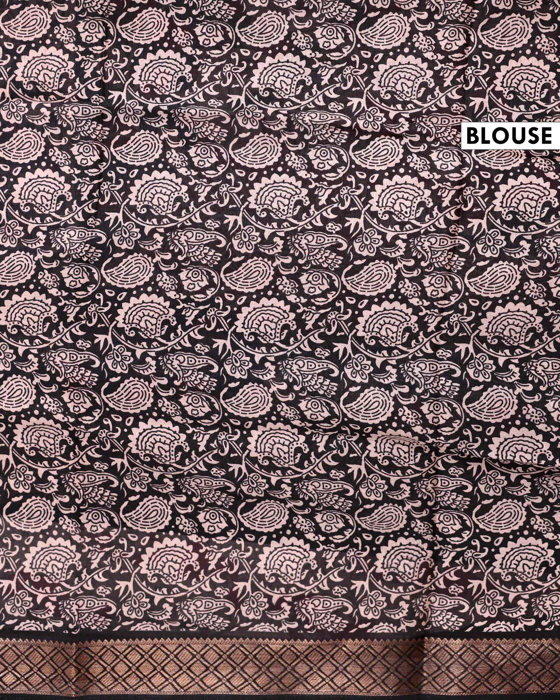 Elegant Semi Chanderi Saree with Traditional Animal Motif Print and Contrasting Zari Woven Border - Red