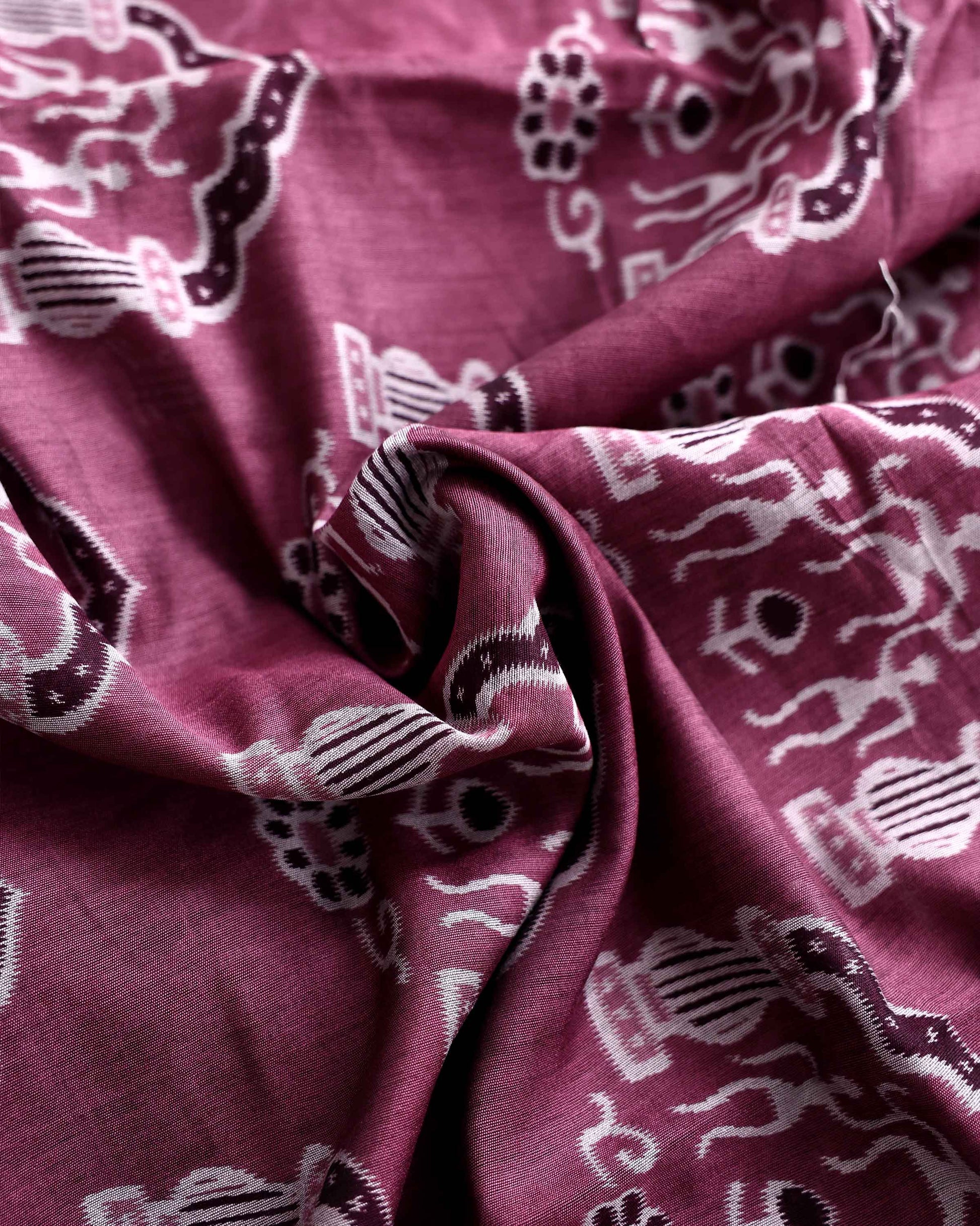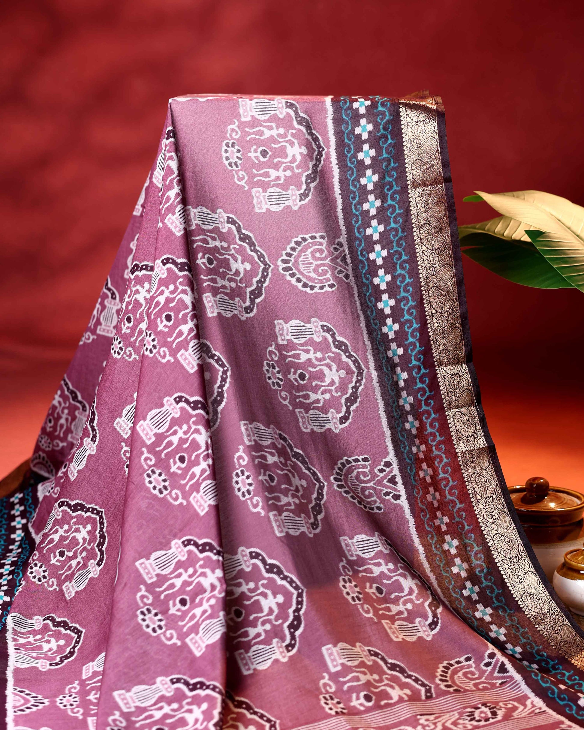 - Elegant Semi Chanderi Saree in Onion Pink with Traditional Kalamkari Motifs and Zari Border
