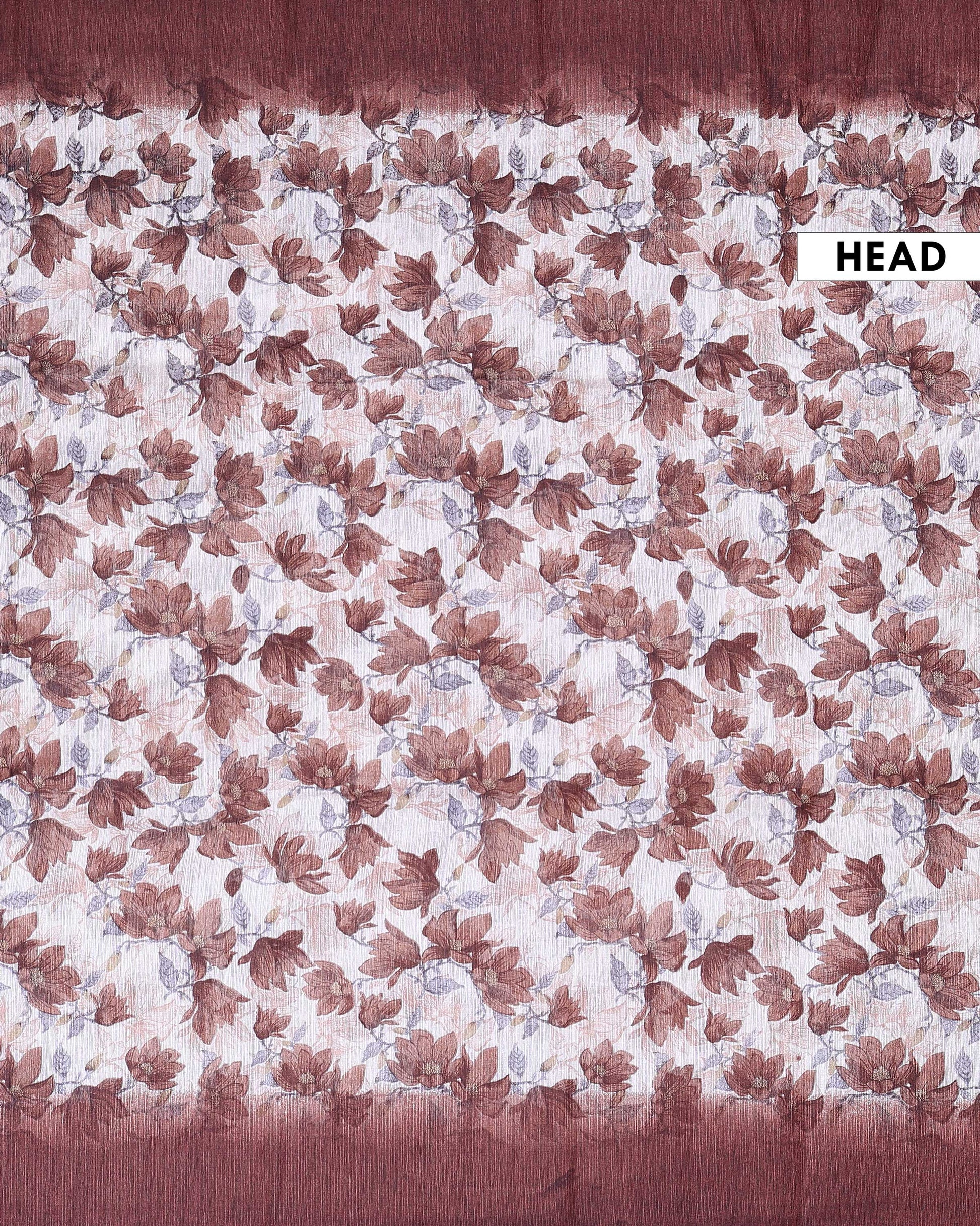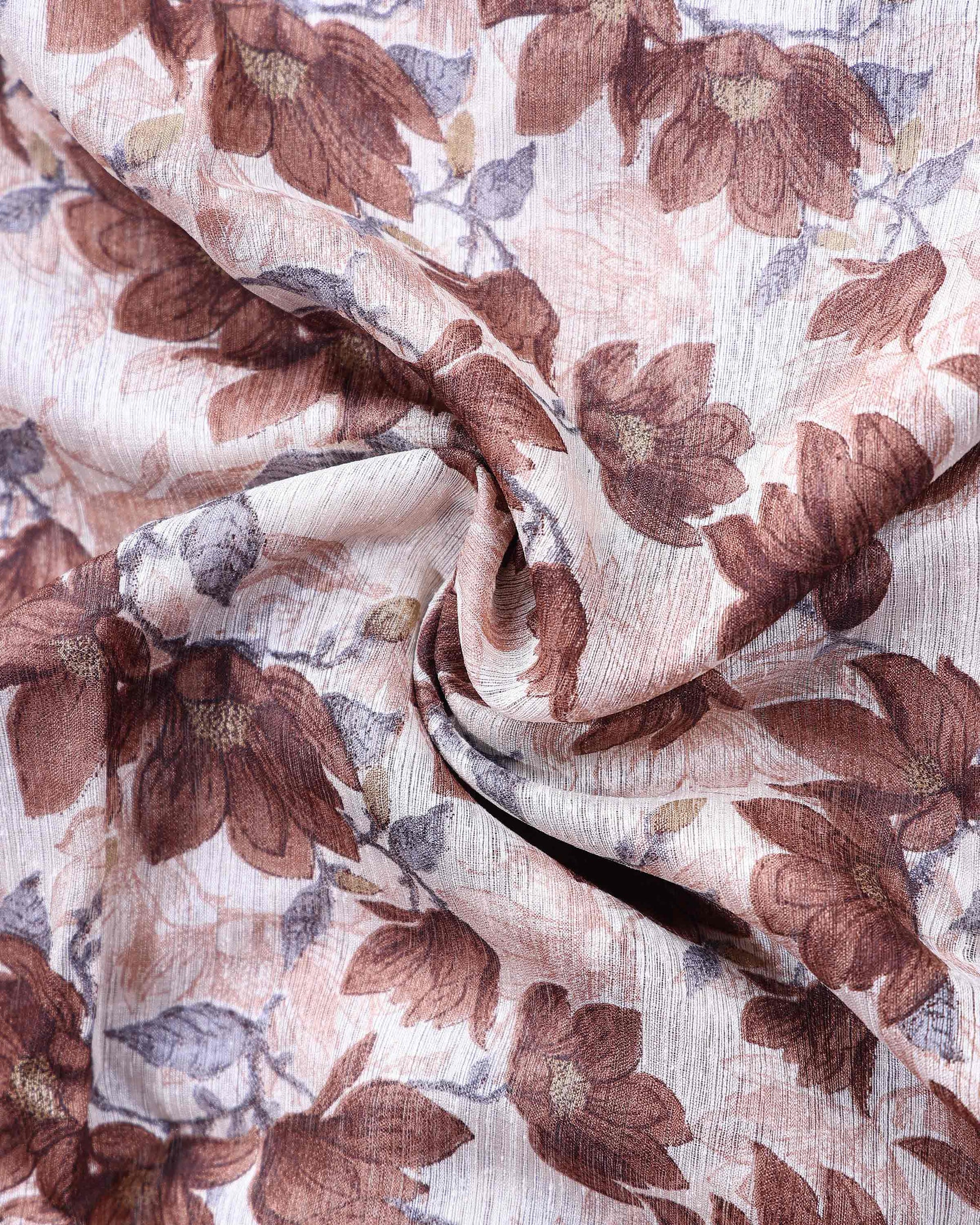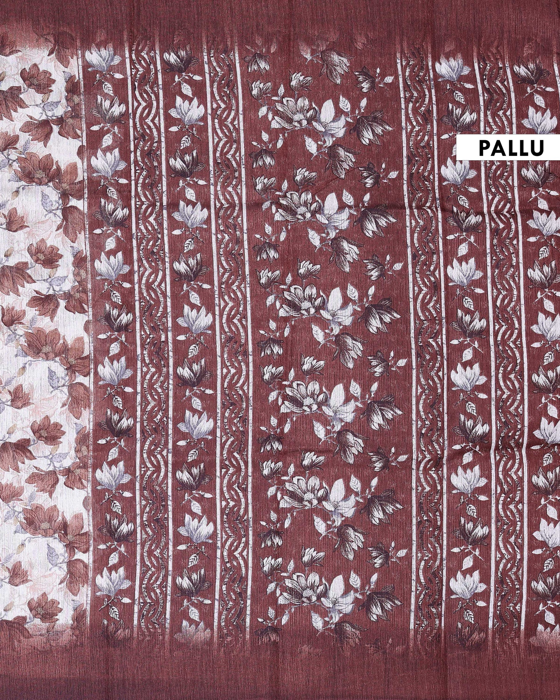 - This elegant Semi Jute saree features all over floral leaf prints on a naturally textured weave, offering a perfect blend of comfort and ethnic char