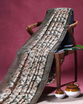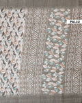 Elegant Semi Jute Saree with All Over Floral Vine Print and Classic Traditional Border - Cream