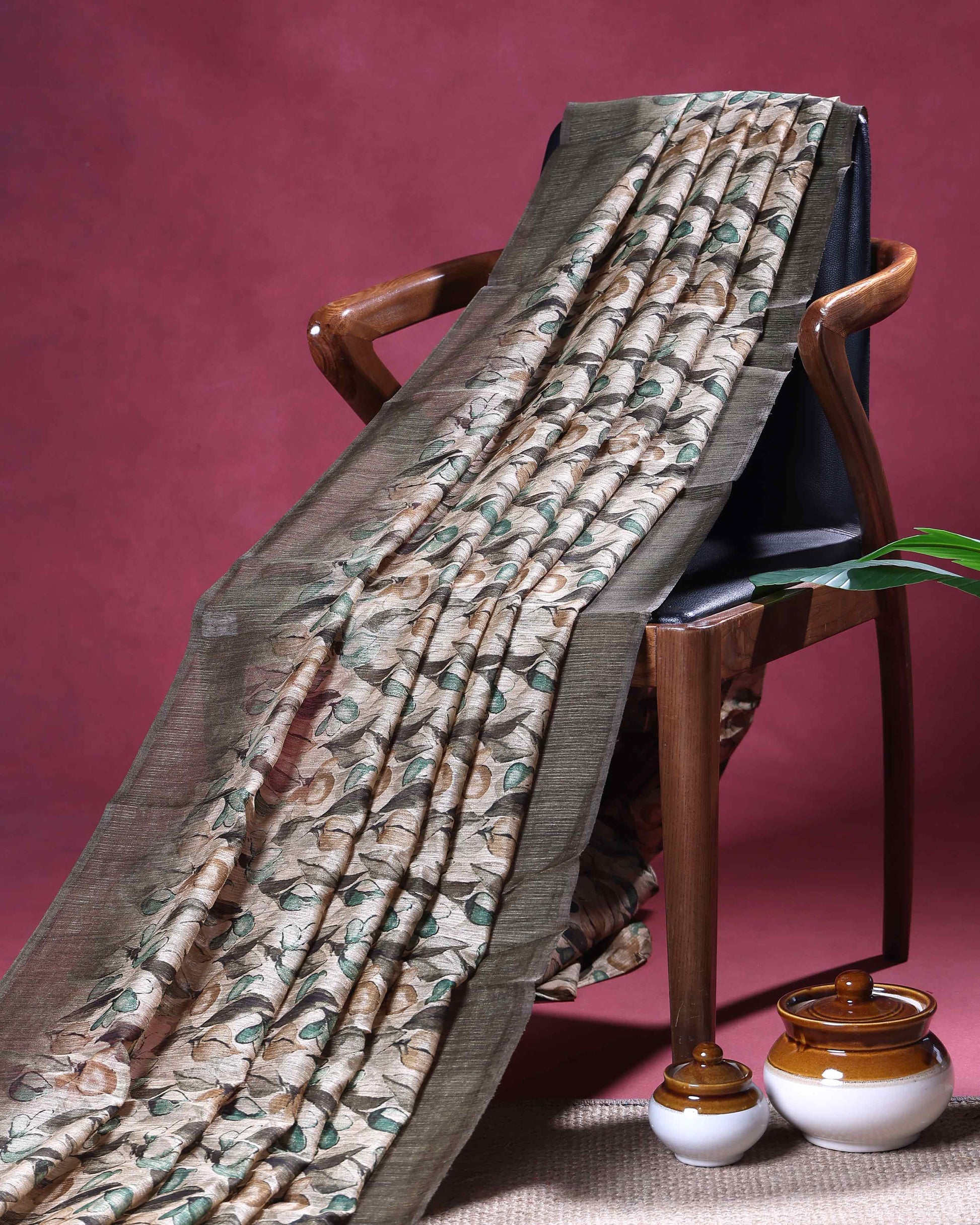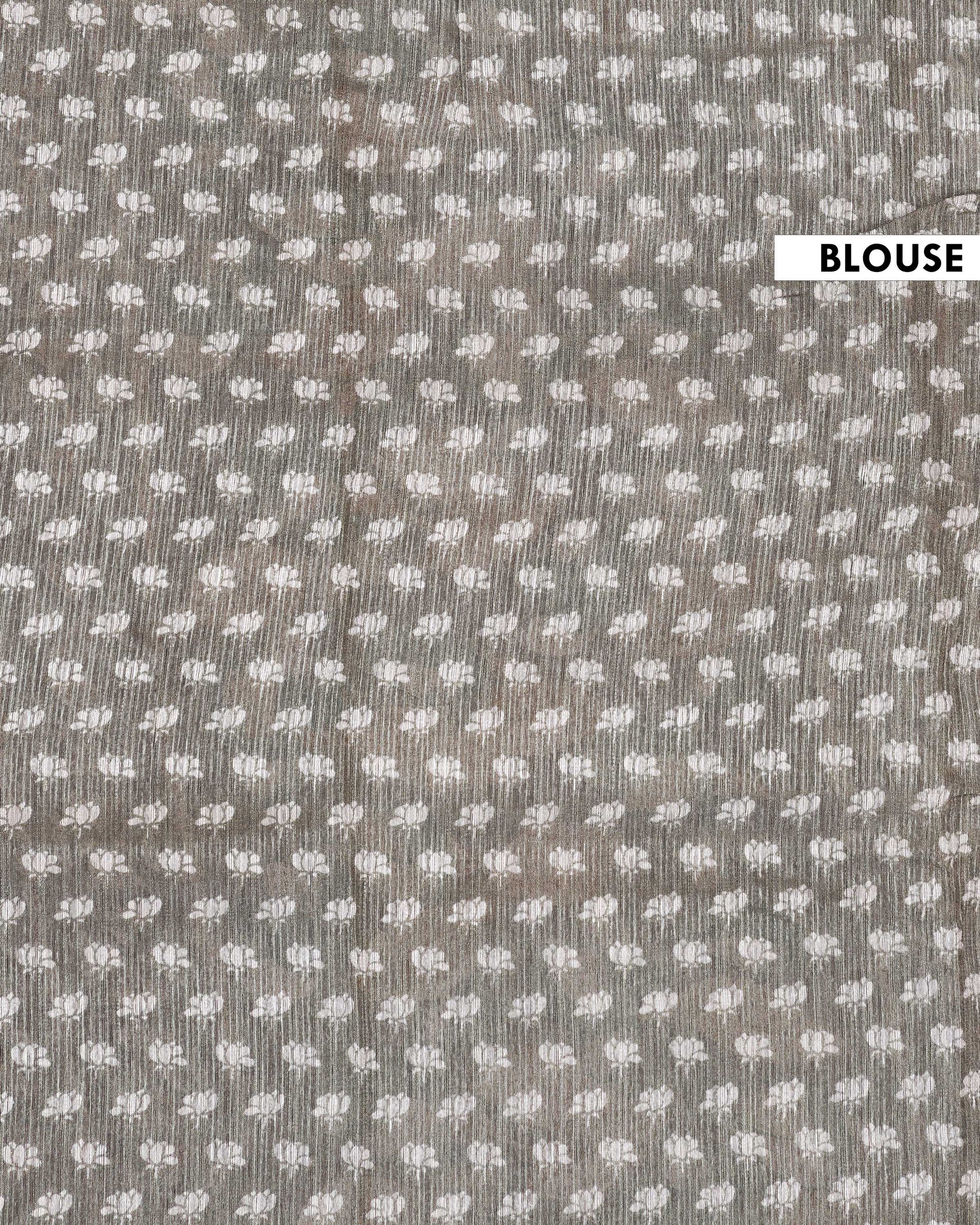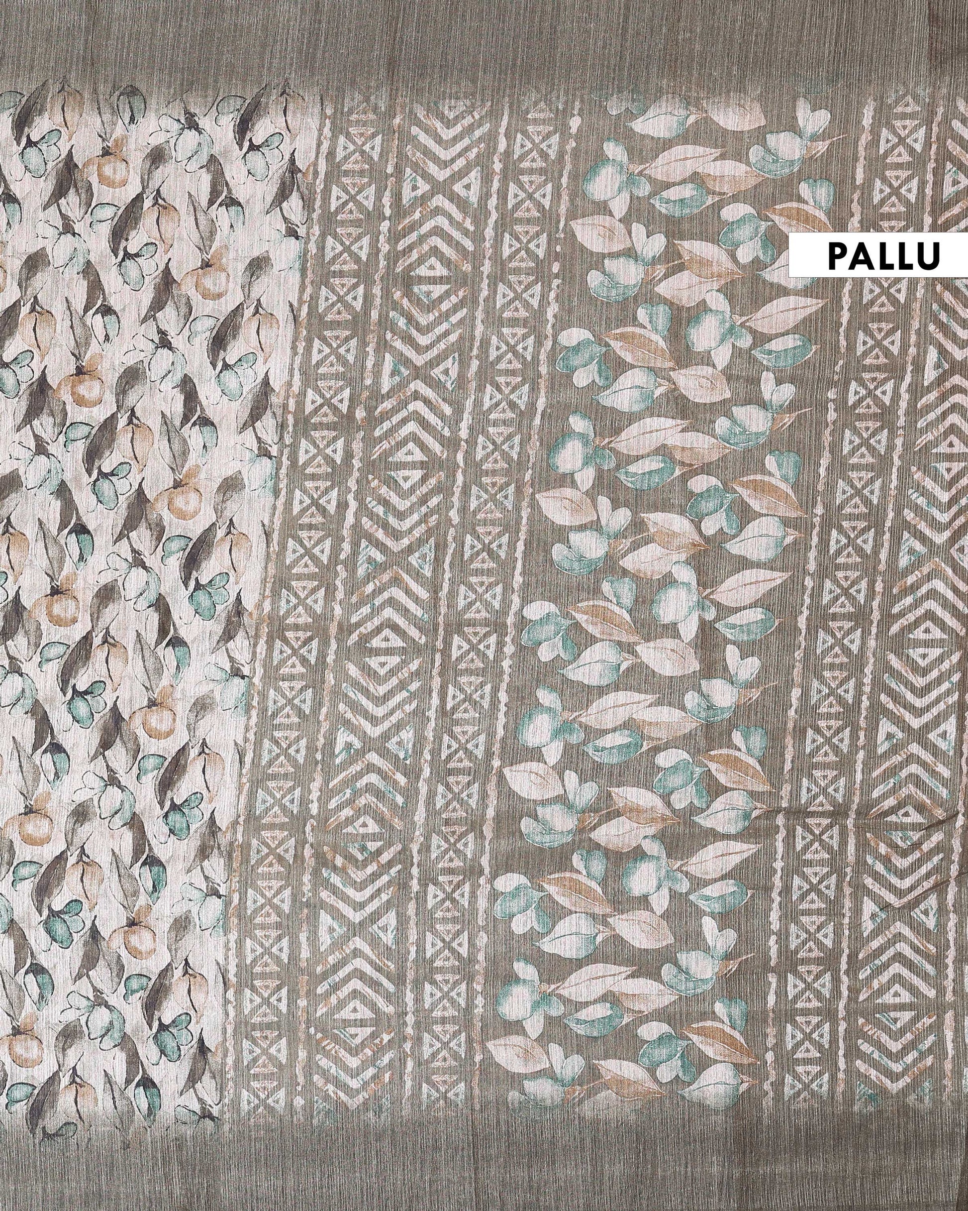 - This elegant Semi Jute saree features an all over botanical floral vine print with a beautifully textured traditional border, offering a perfect blend of comfort and ethnic charm