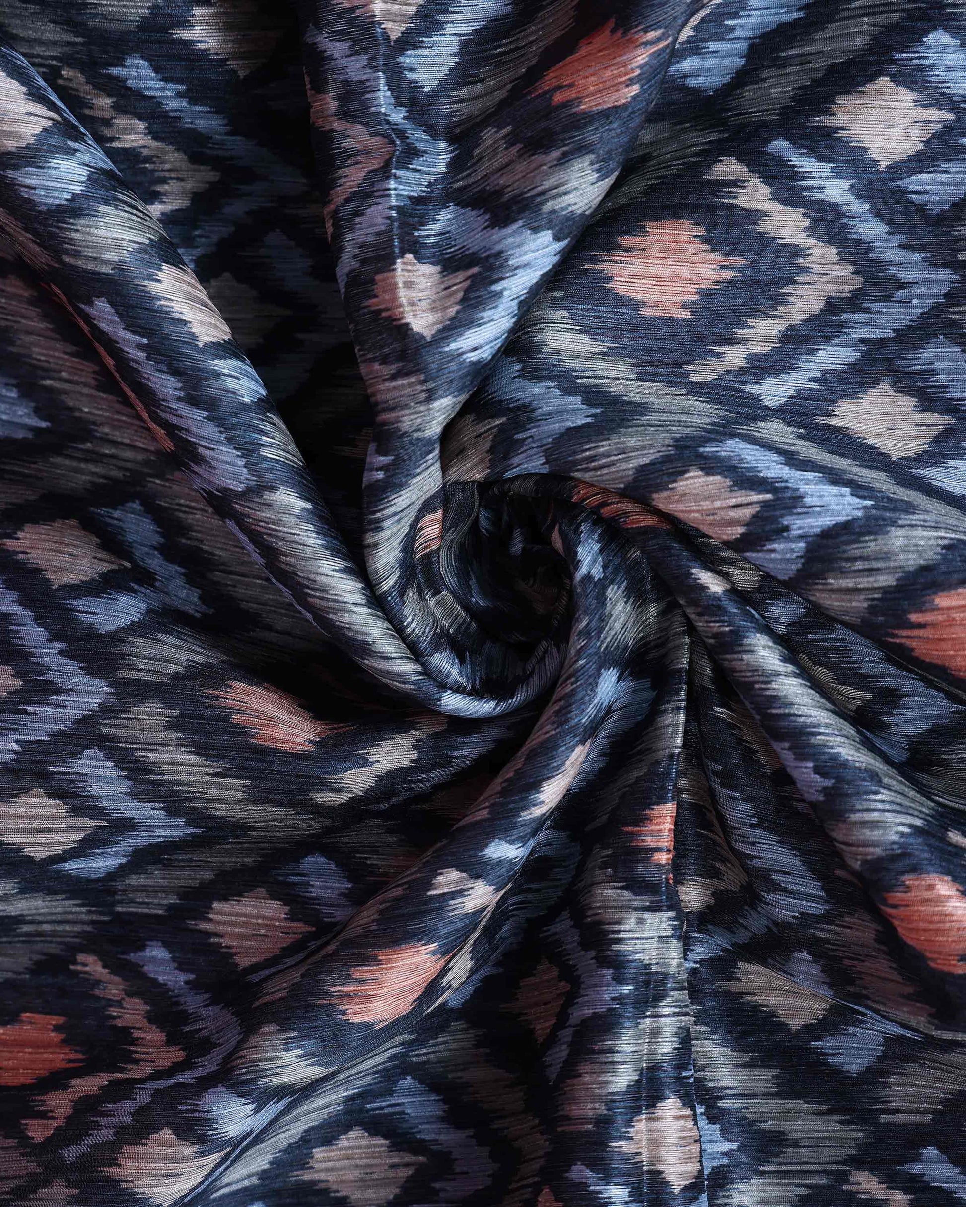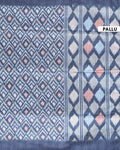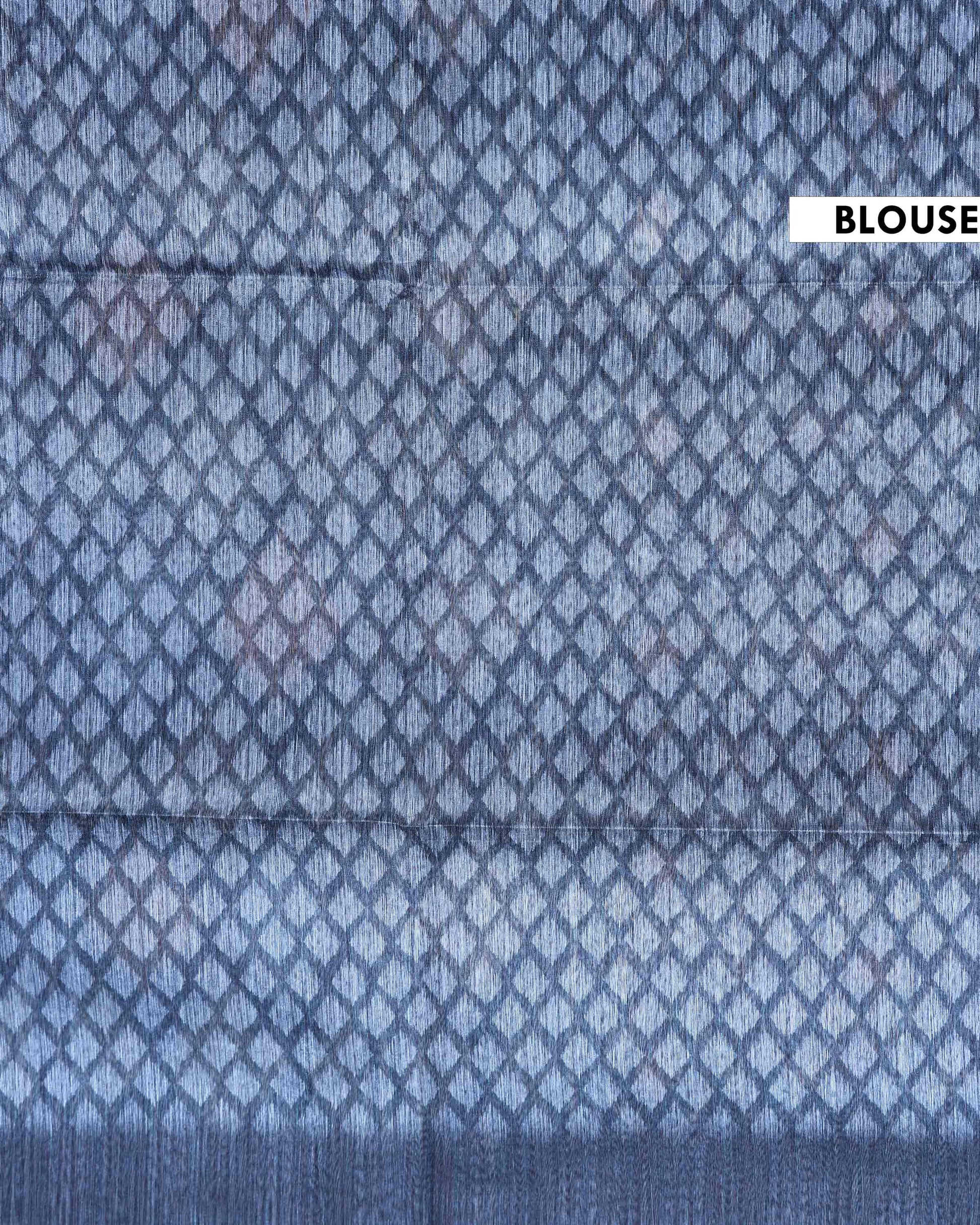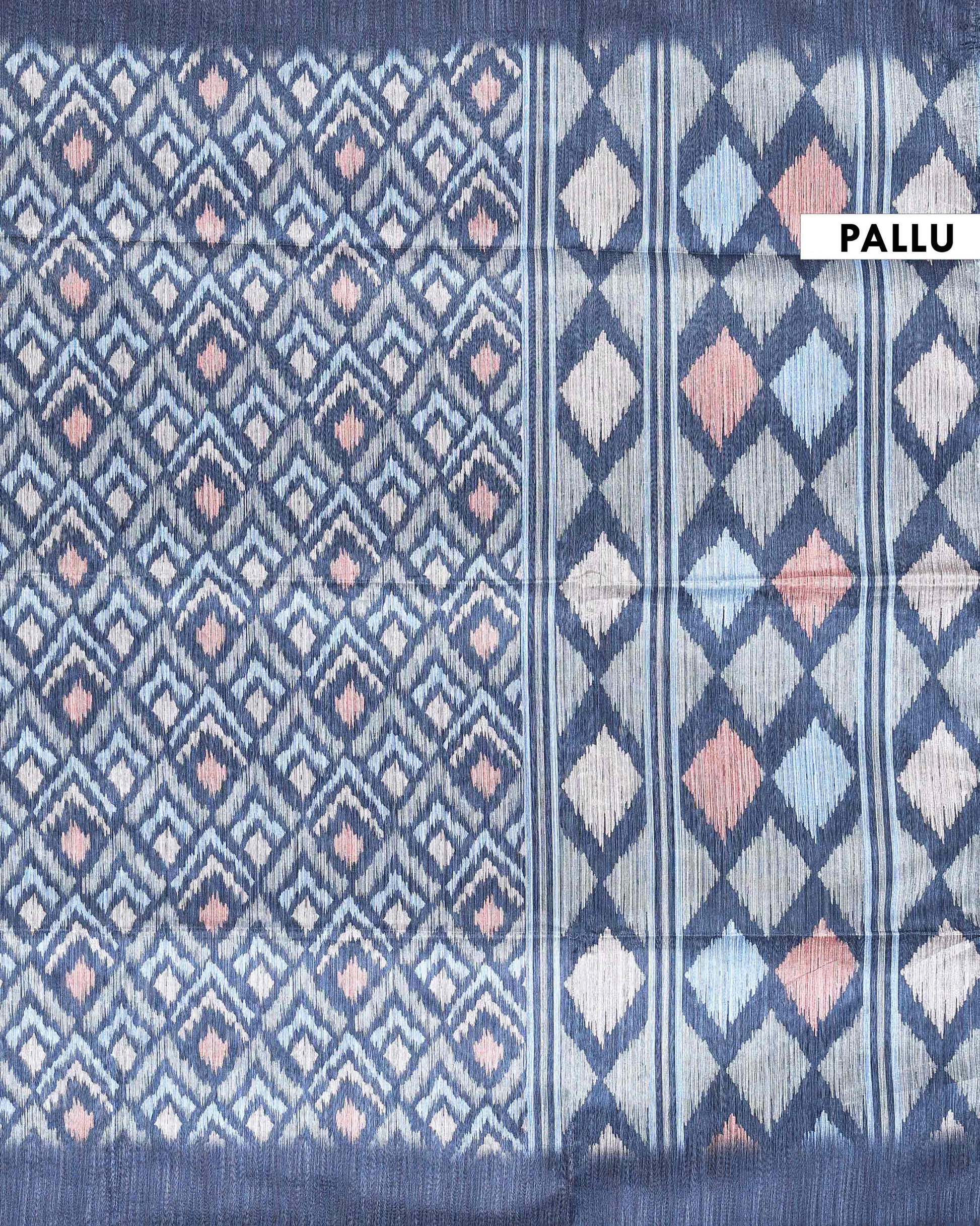 - Elegant semi jute saree intricate Ikat inspired diamond motifs and a beautifully woven ethnic border, offering a perfect blend of tradition and contemporary grace.