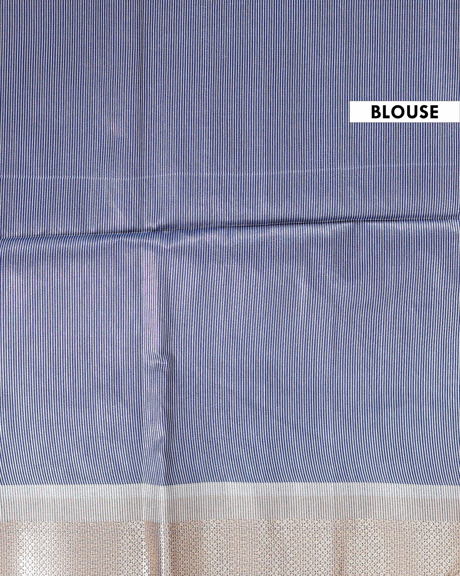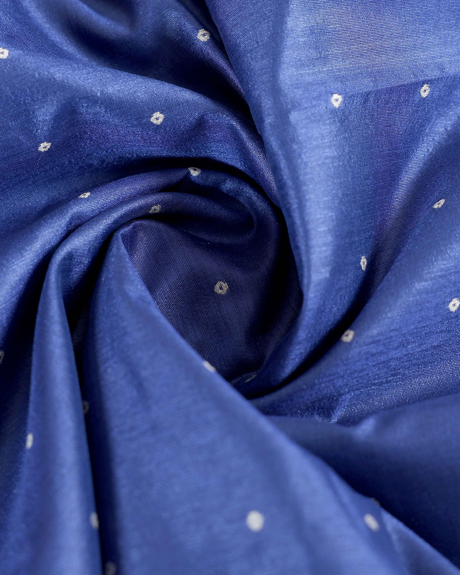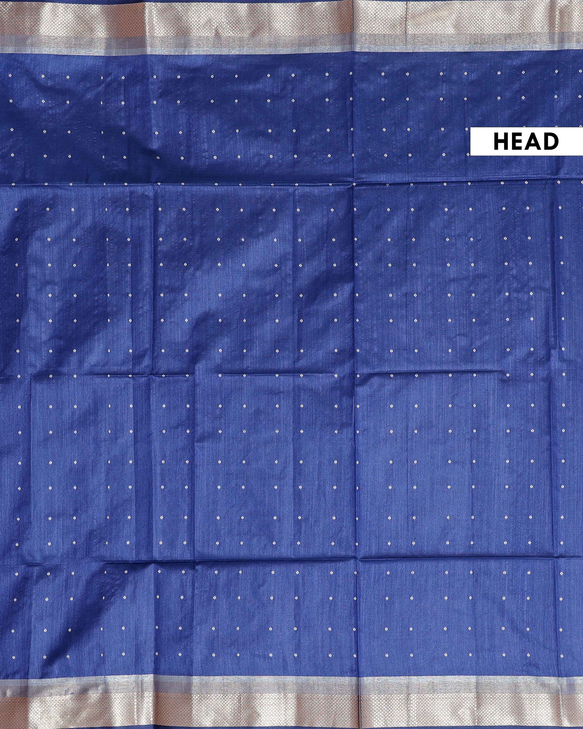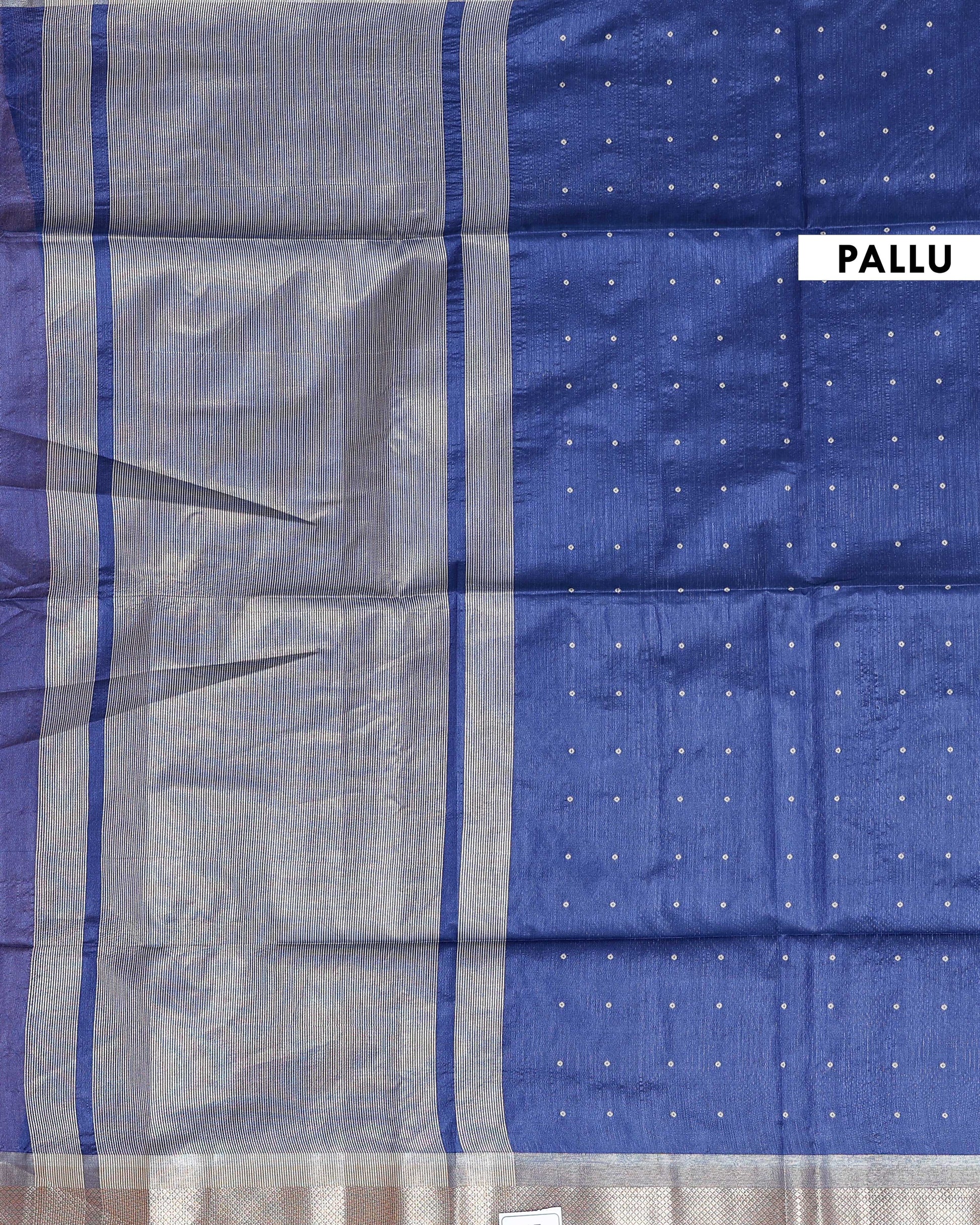 - Elegant Blue semi-silk saree delicate golden butti motifs and a shimmering zari-woven border