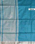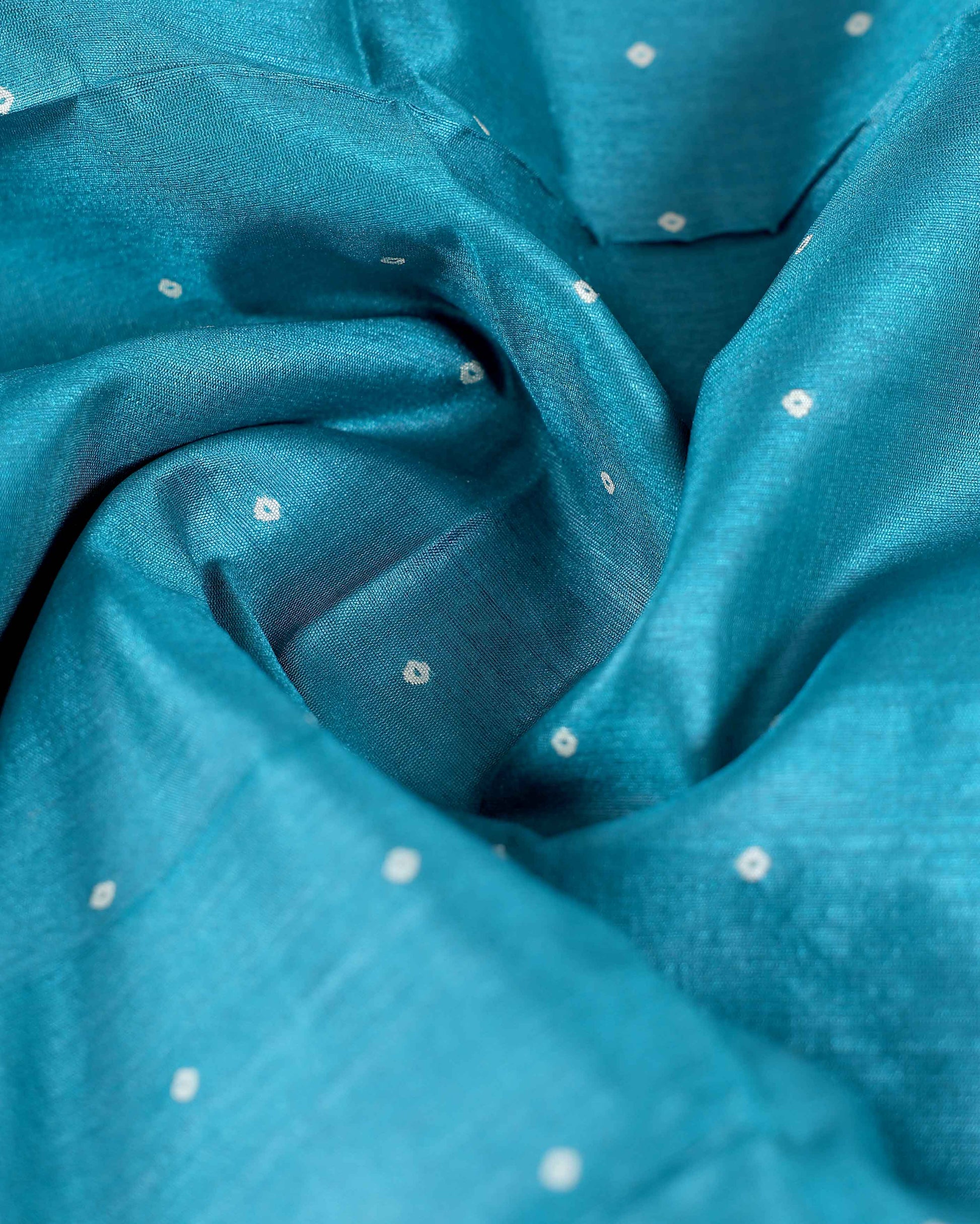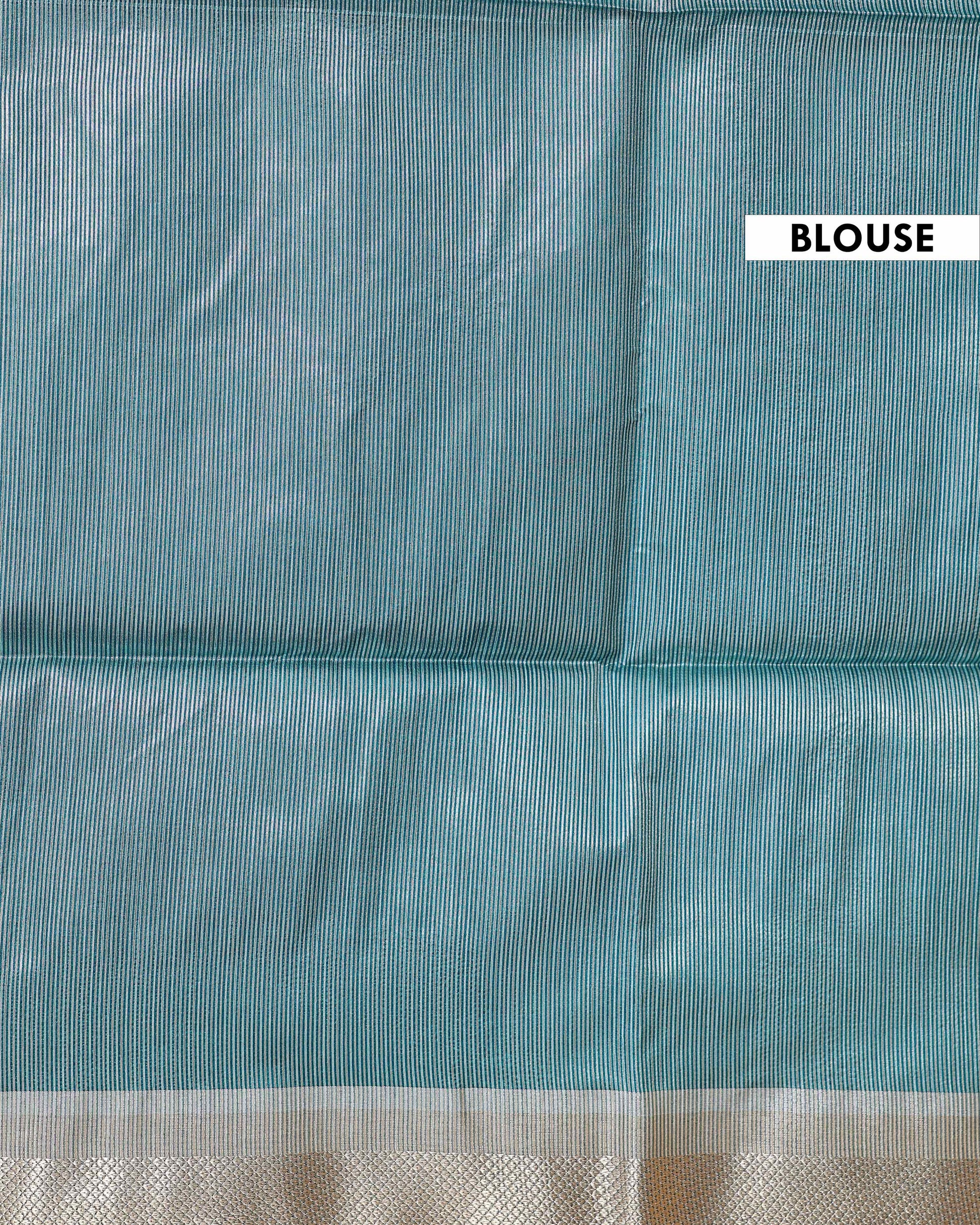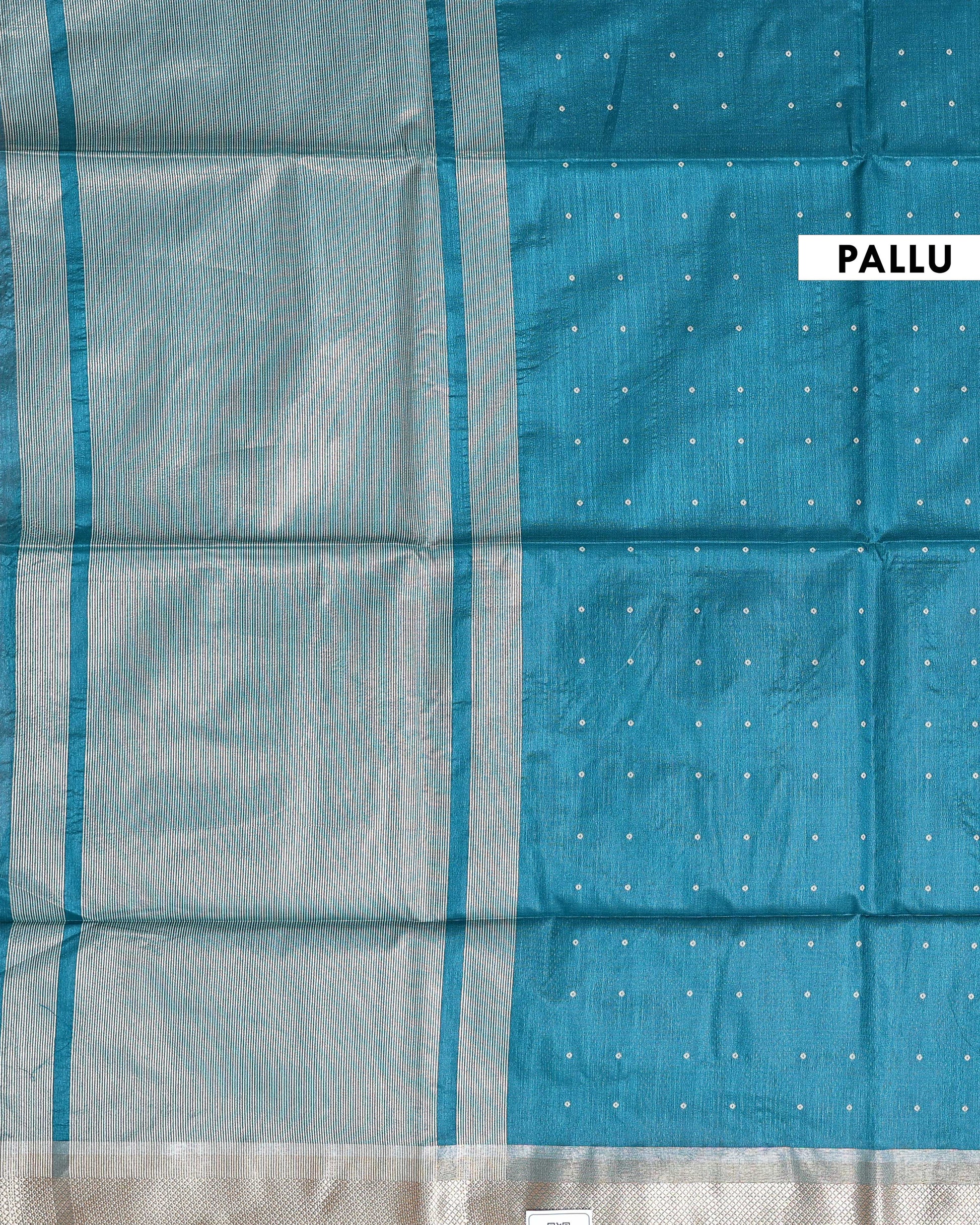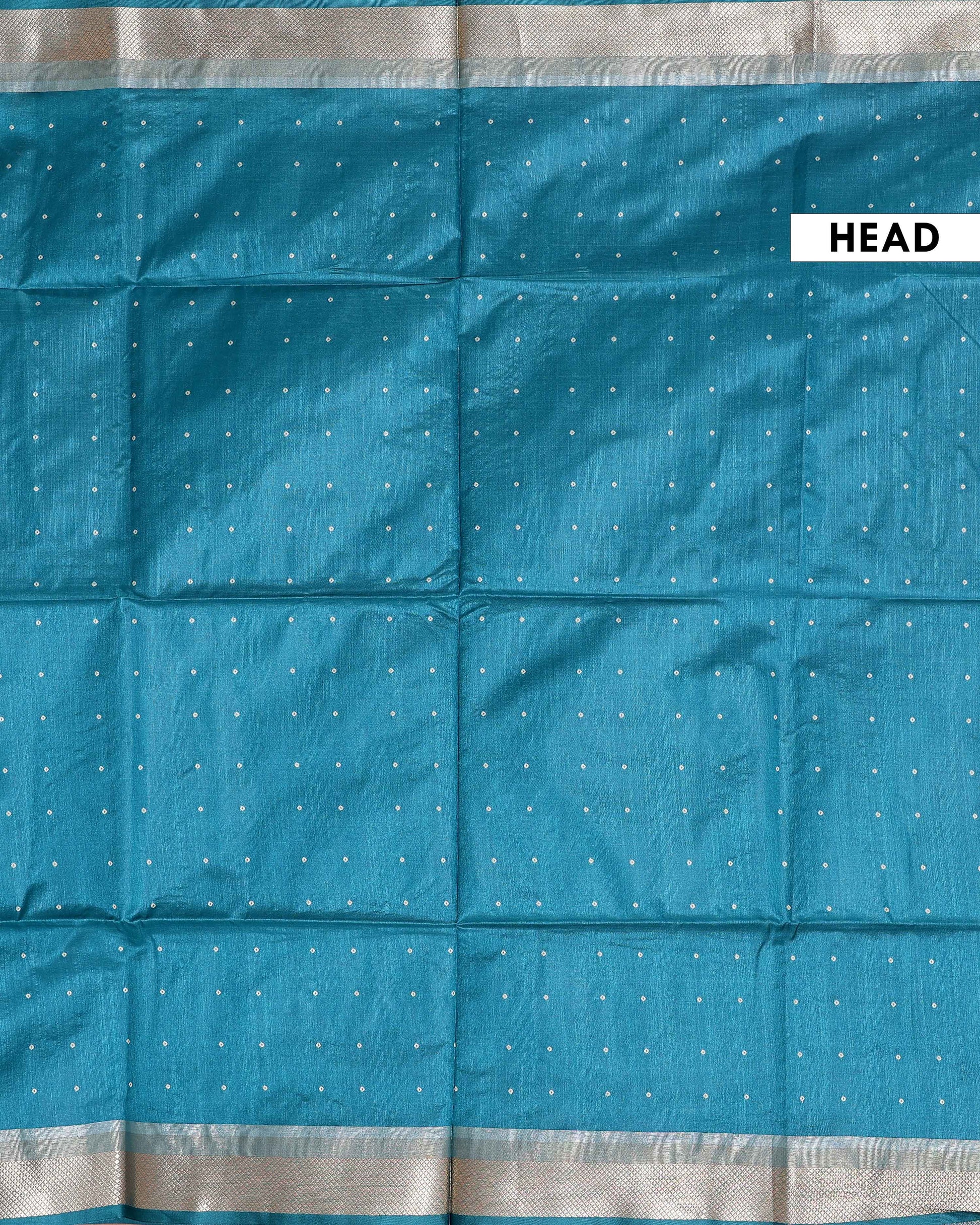 - Elegant Teal semi-silk saree delicate golden butti motifs and a shimmering zari-woven border