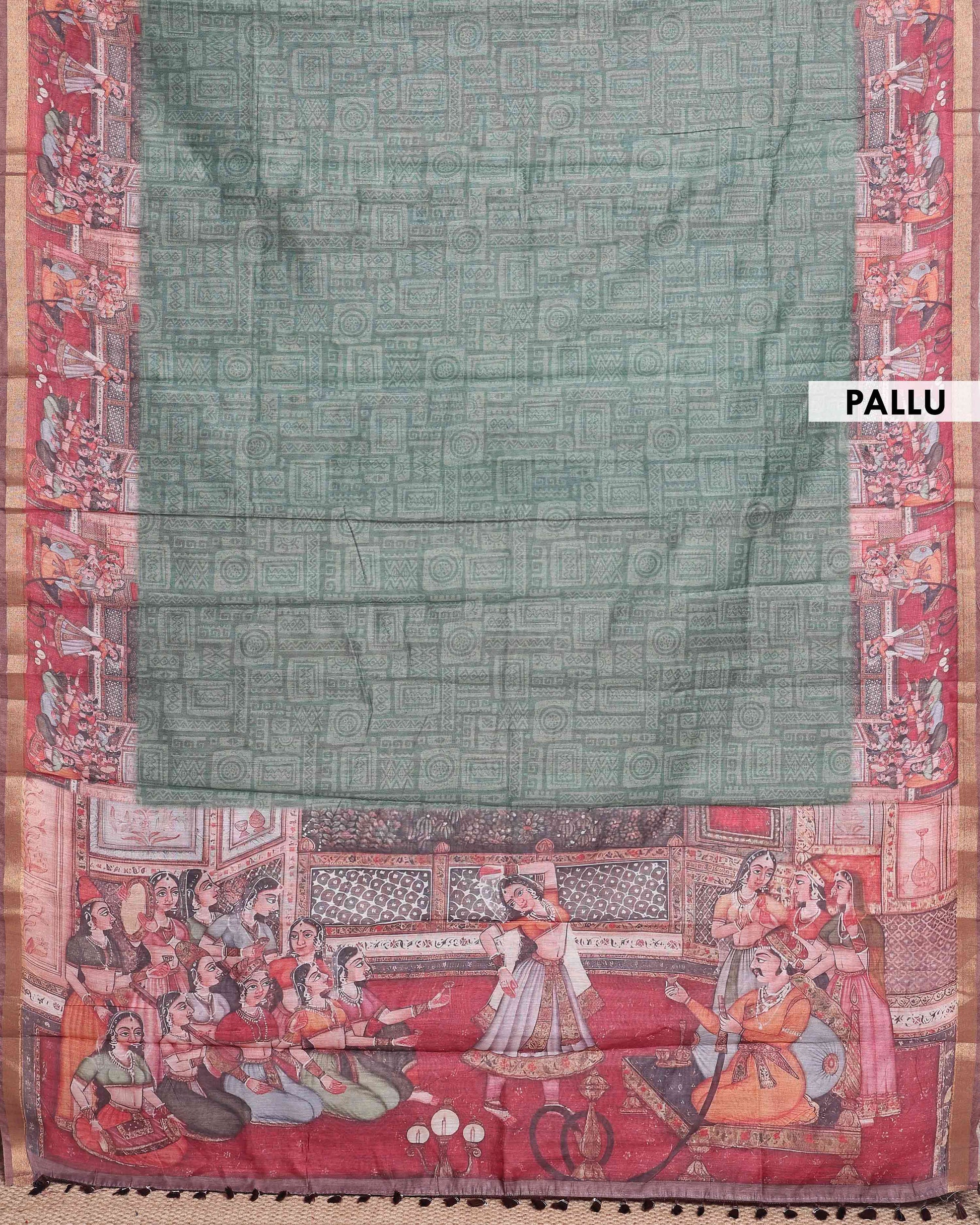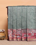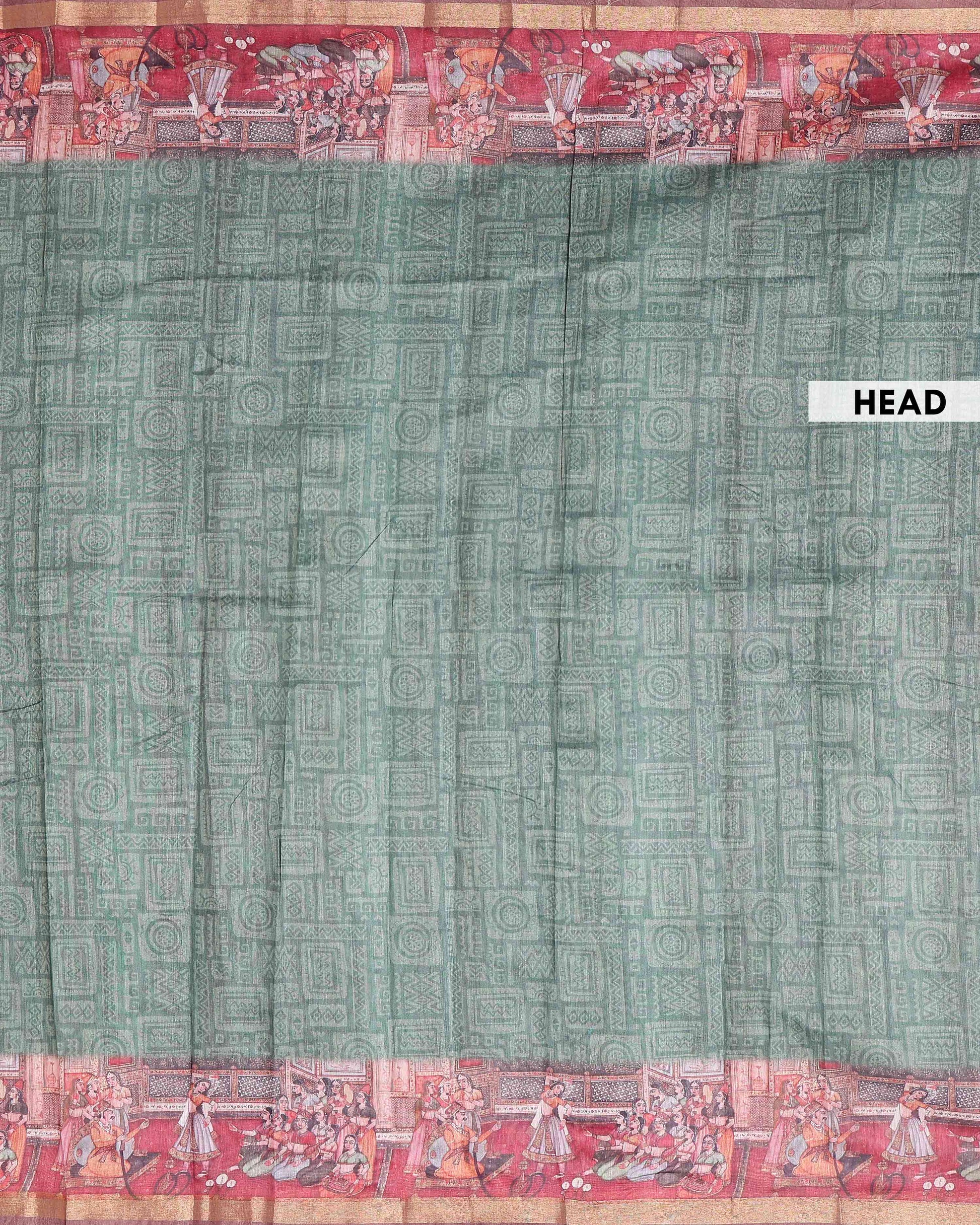 Elegant Semi-Silk Saree with Intricate Printed Border and Pallu - Green