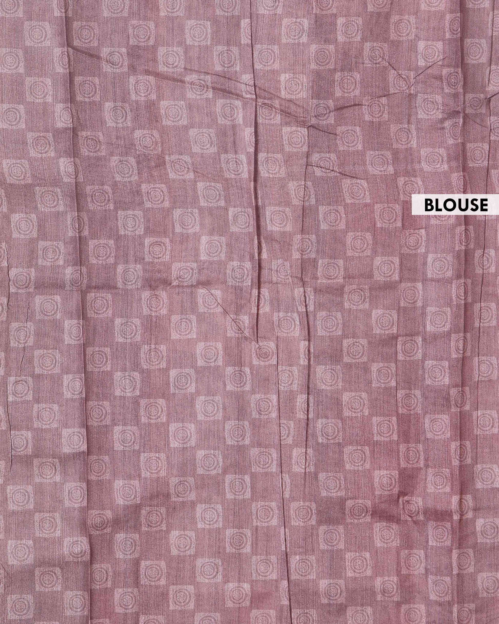- Embrace classic elegance with this Semi Silk Saree adorned with traditional print designs